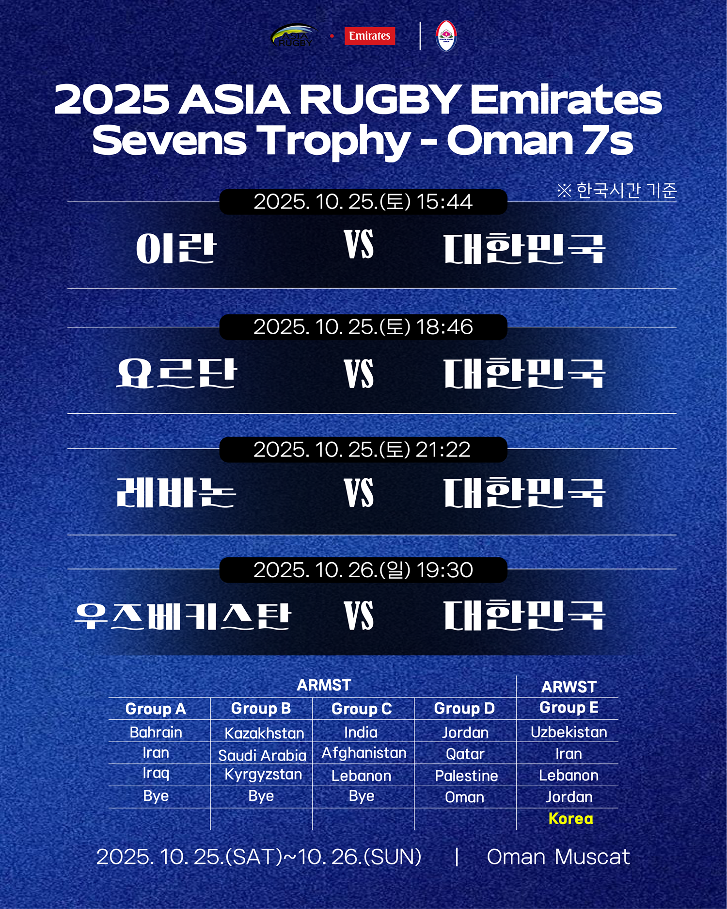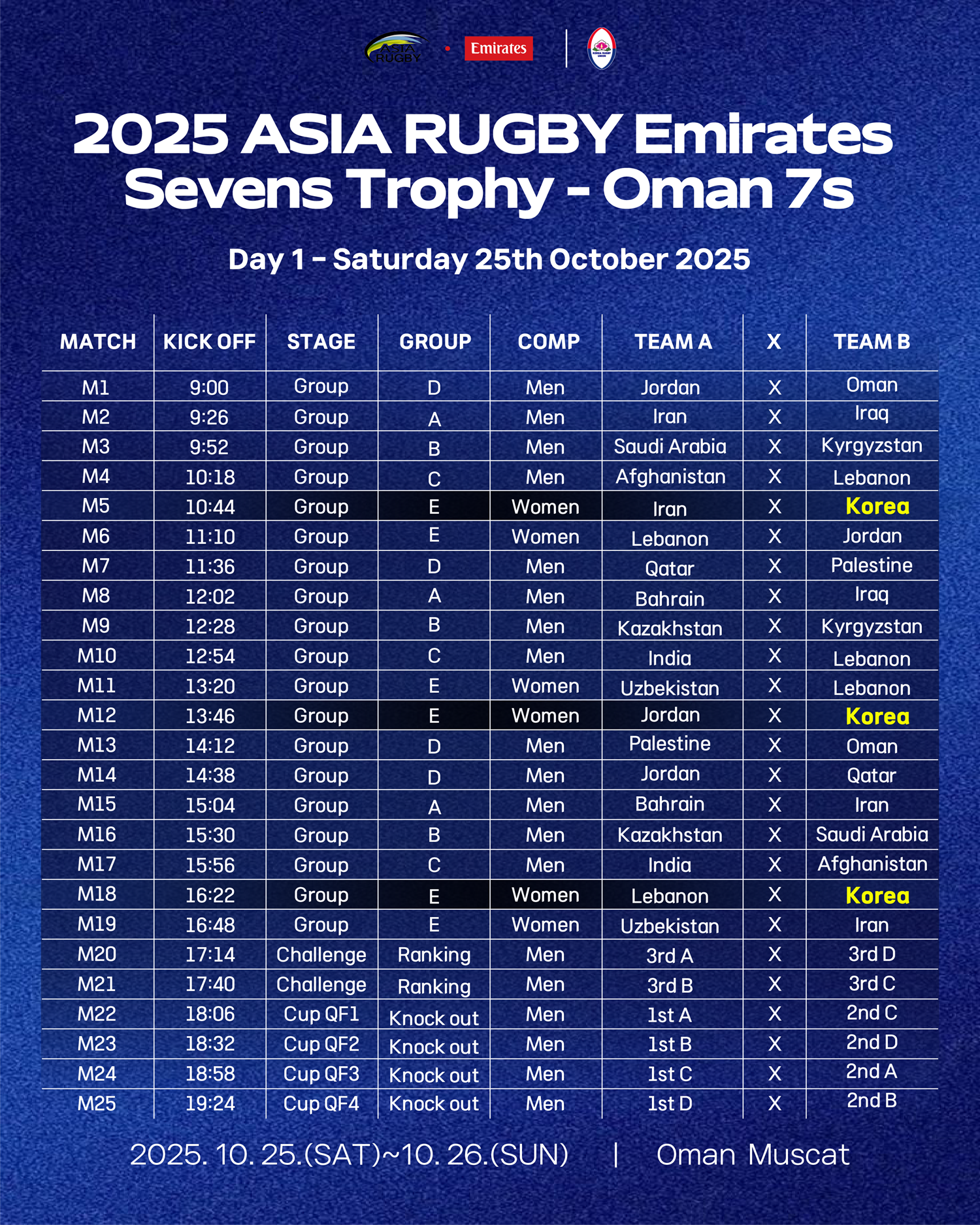 2025 아시아 럭비 에미레이츠 세븐스 트로피 대진표 안내