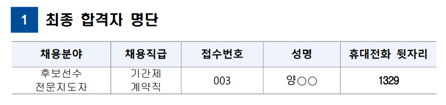 2025.10.31대한럭비협회 홈페이지 공고(2025. 10. 16.)에 따라 시행하고 있는 후보선수 전문지도자 공개채용 최종 합격자를 붙임과 같이 공고합니다.
