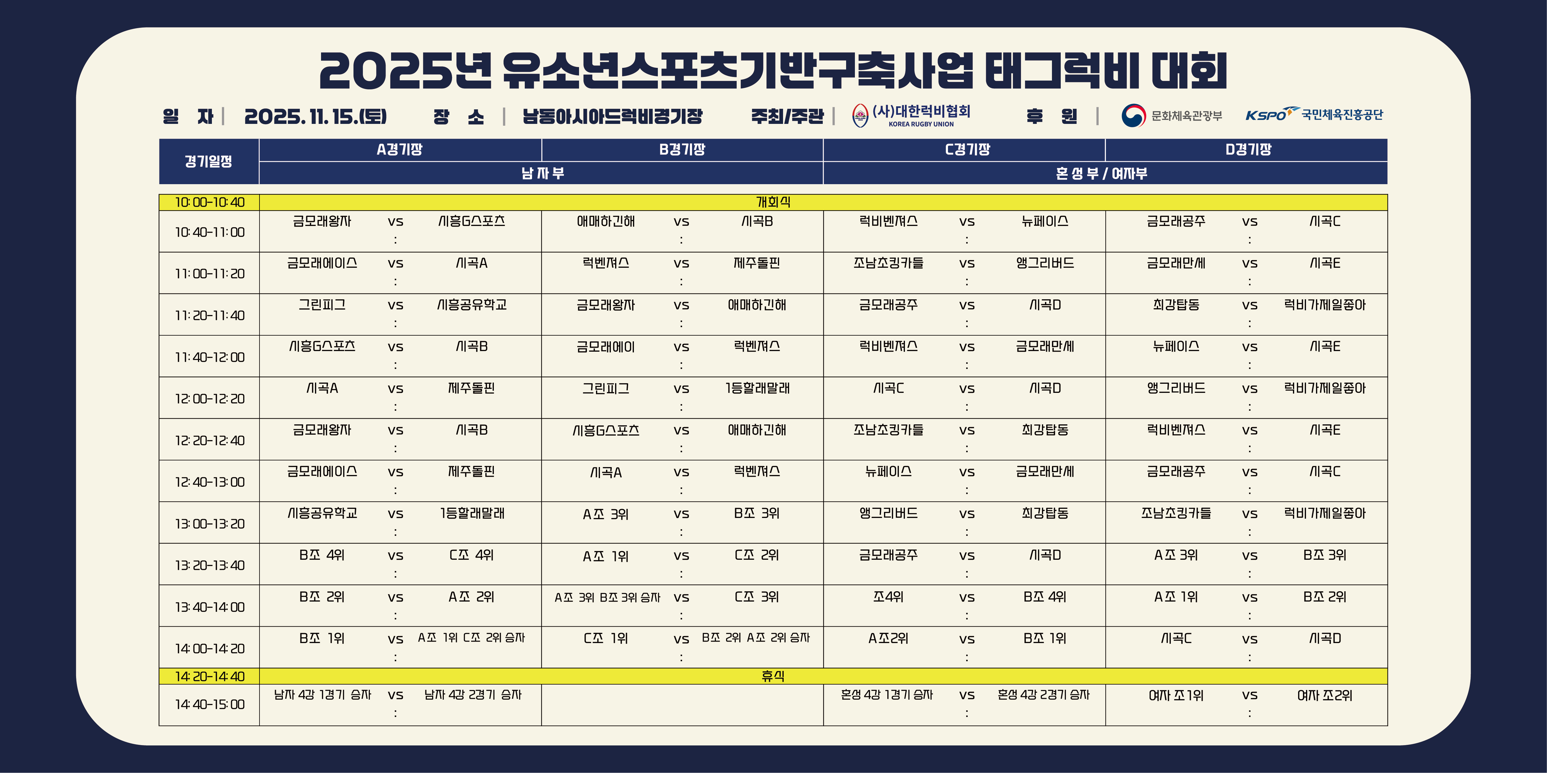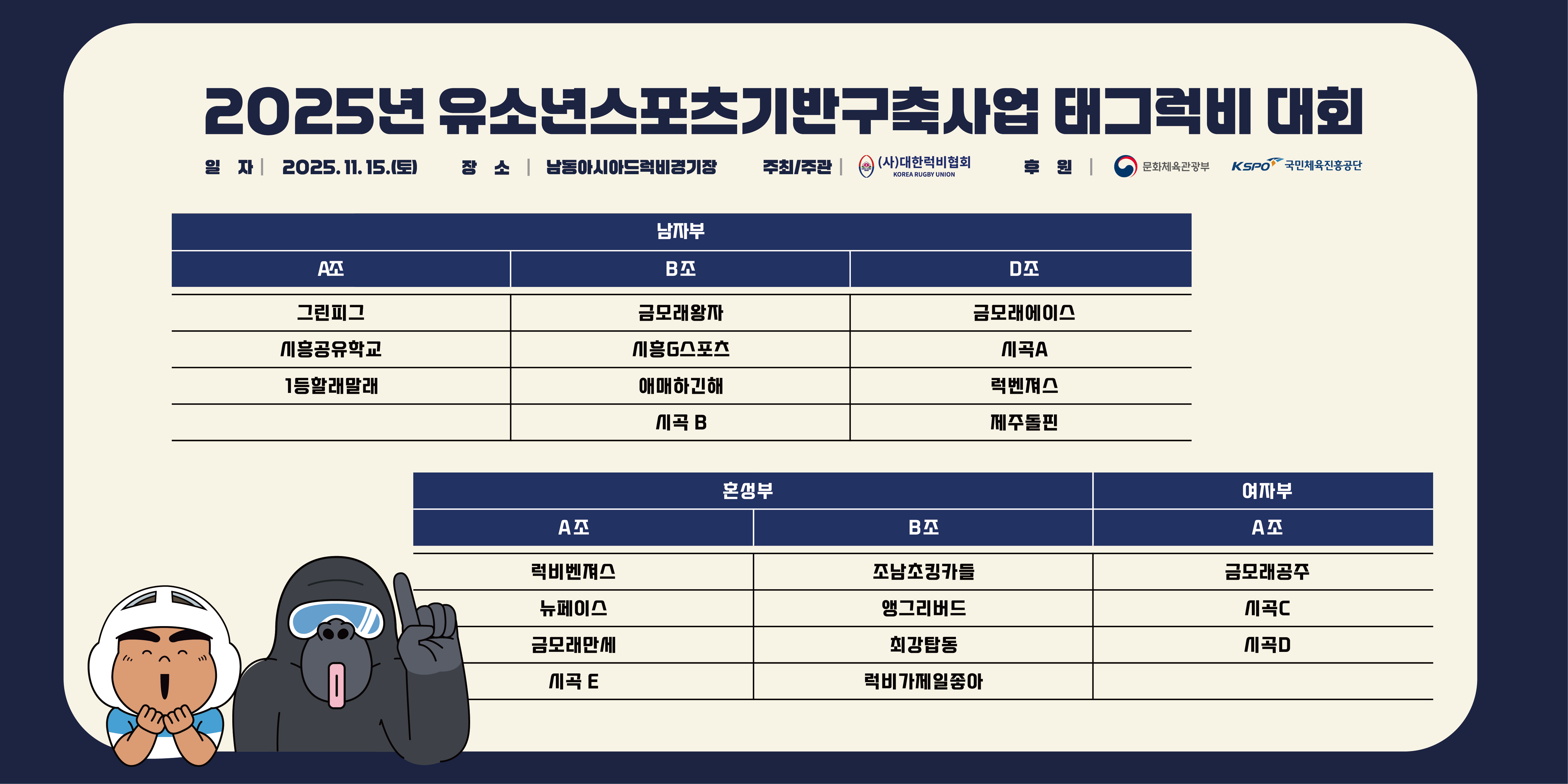 2025년도 유소년스포츠기반 구축 사업 태그럭비 대회 대진표 알림