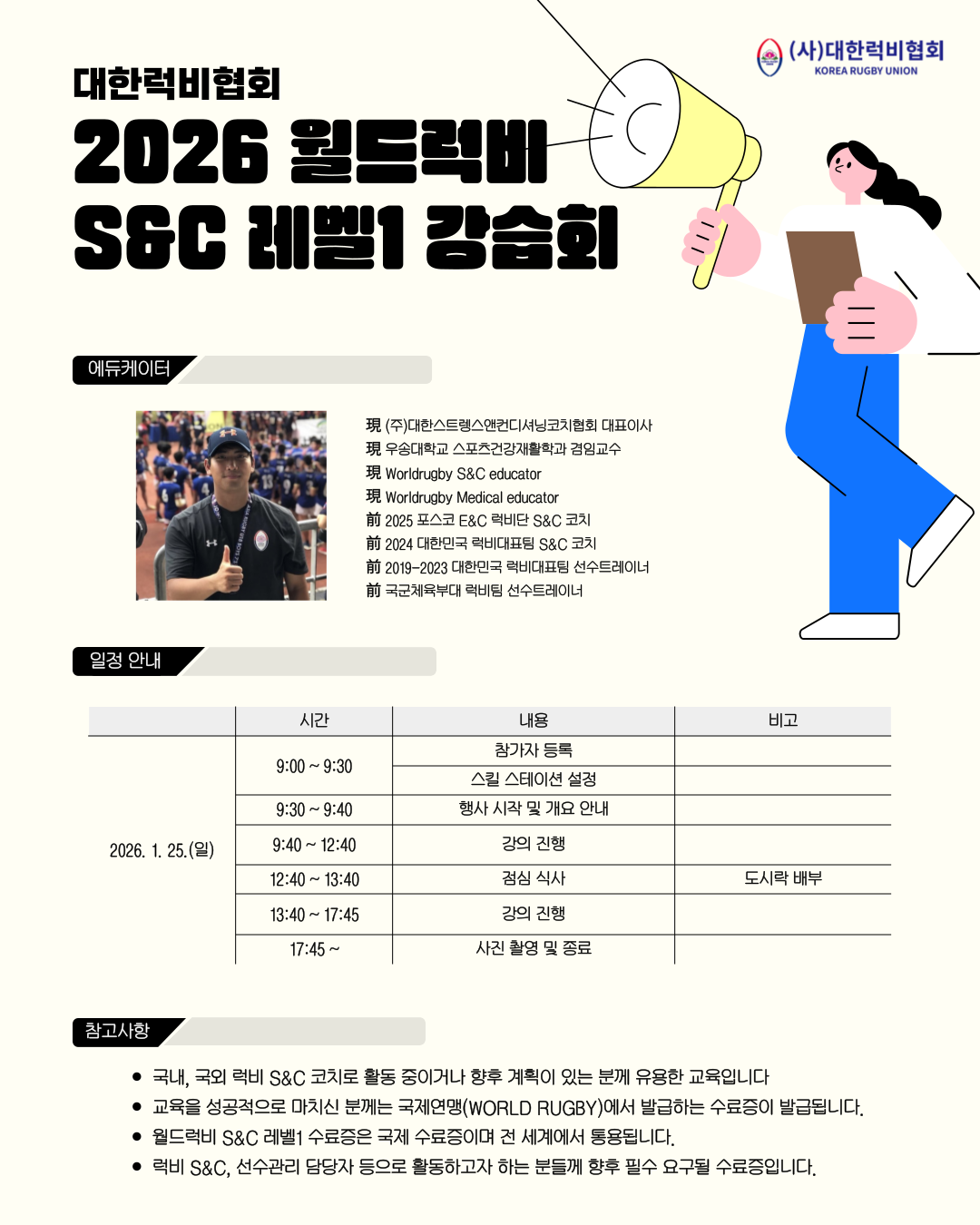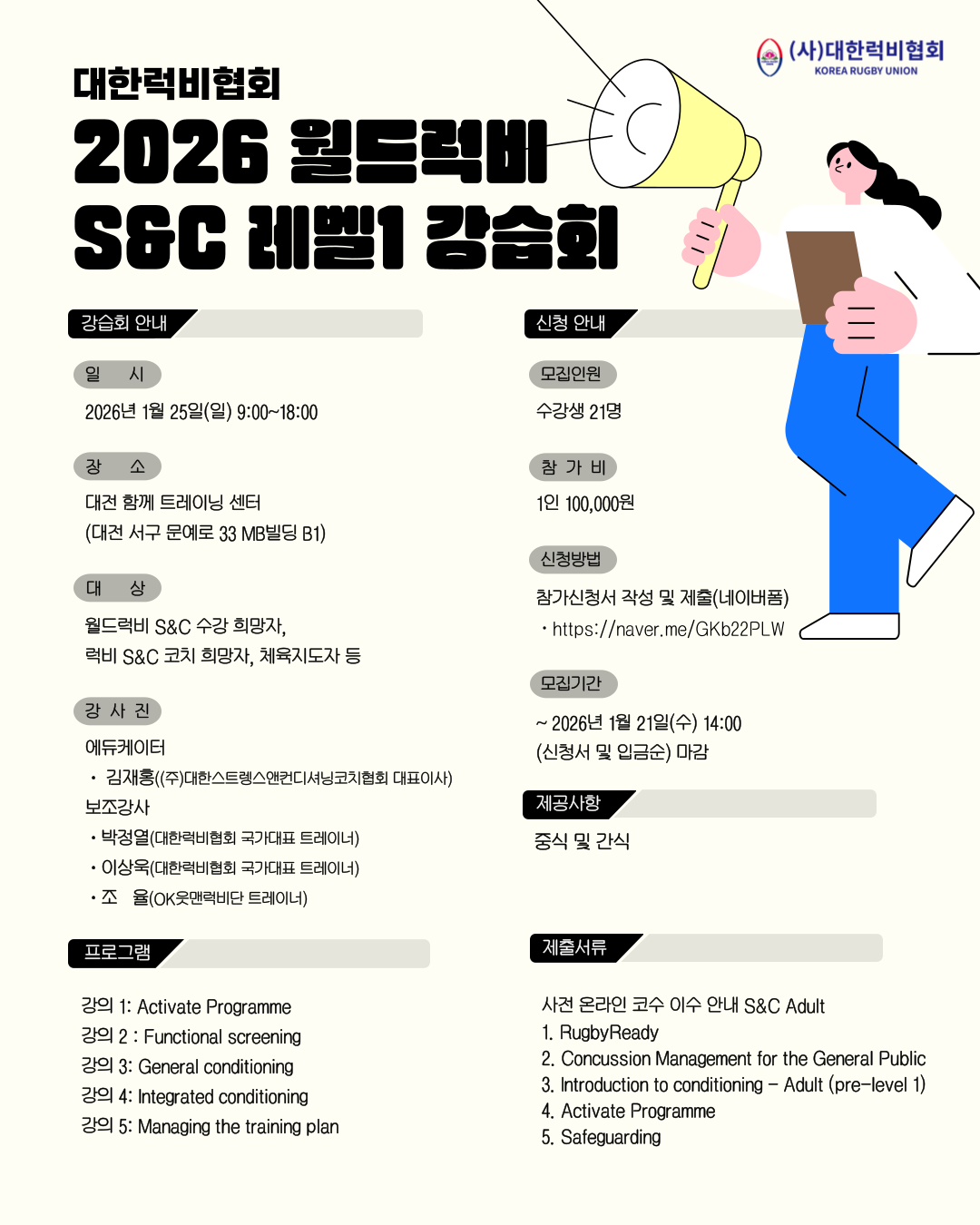 - 신청 링크: 2026 월드럭비 S&C 레벨1 강습회 - 네이버 폼