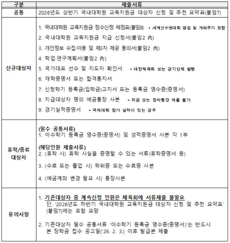 [국민체육진흥공단] 2026년도 상반기 국내대학원 교육지원금 신청 및 신규 모집