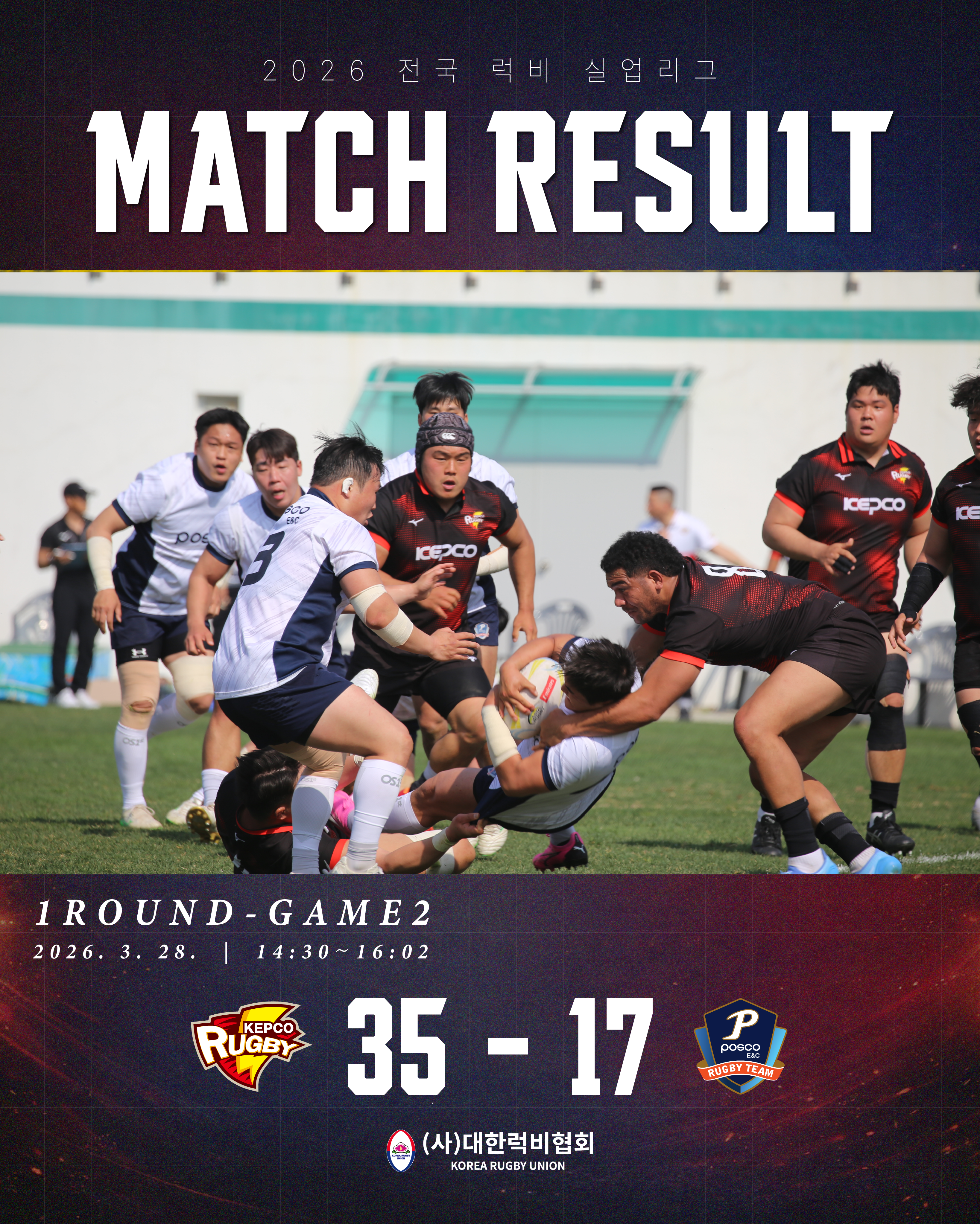 2026 전국 럭비 실업리그(3.28.) 경기 결과