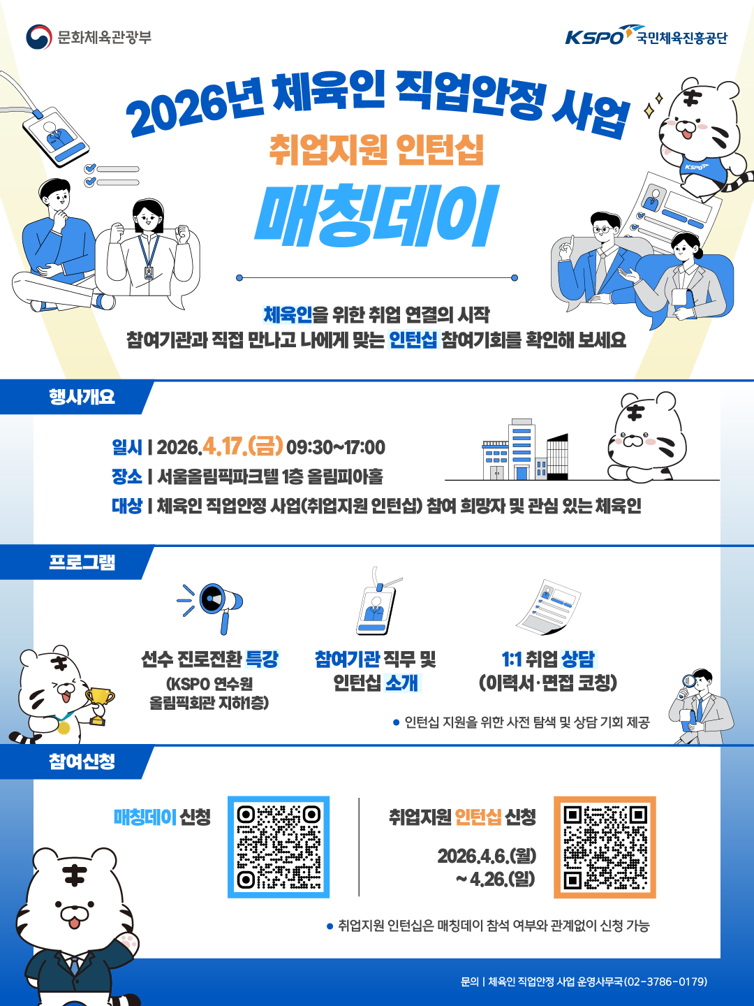 2026년 체육인 직업안정 사업 취업지원 인턴십 매칭데이