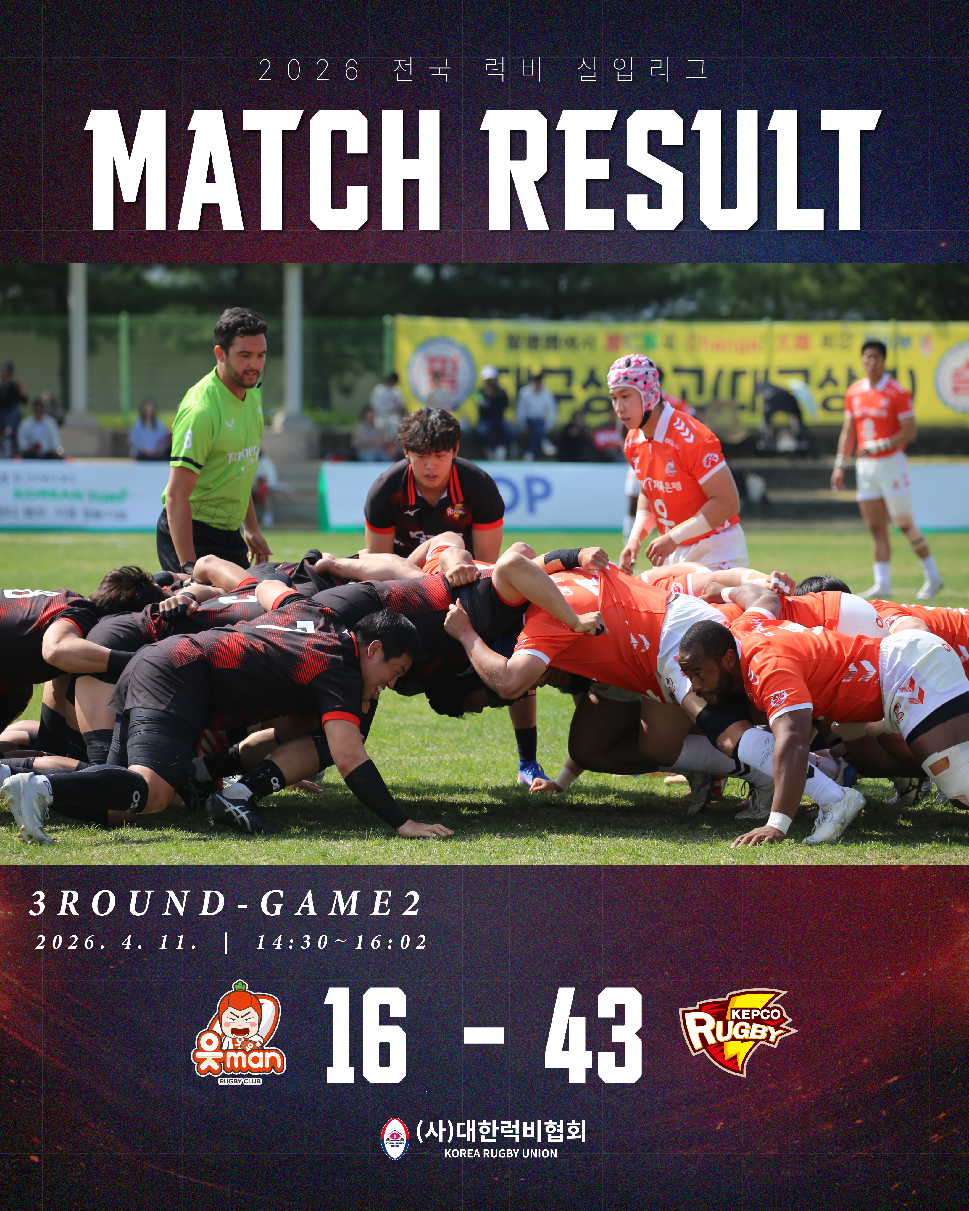 2026 전국 럭비 실업리그(4. 11.) 경기 결과