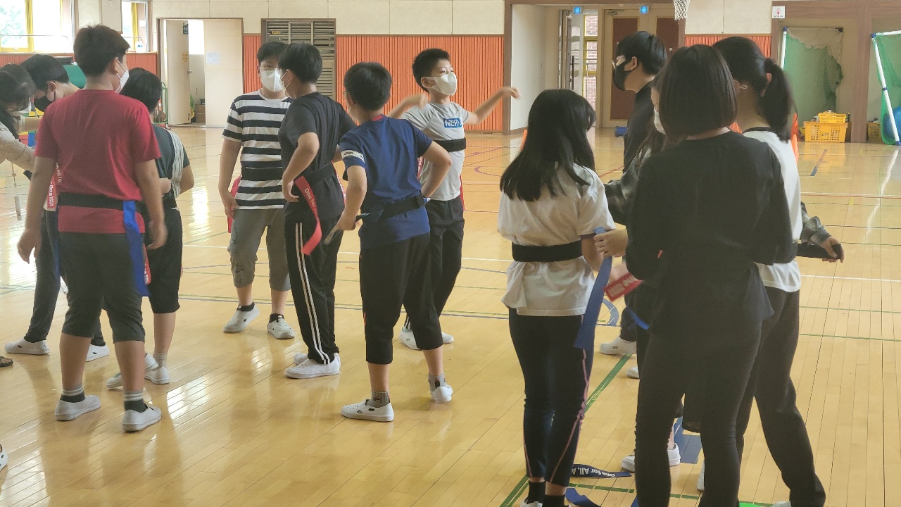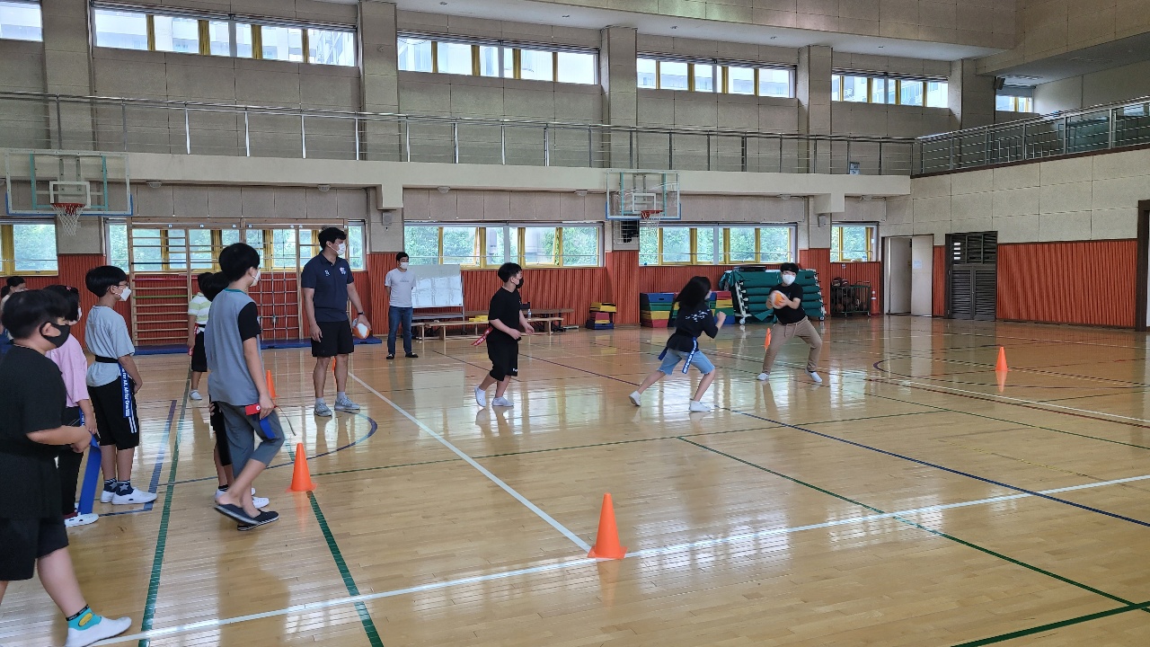청계초등학교의 태그럭비수업은 럭비에 더욱 가까운 방식으로 진행되고 있습니다.