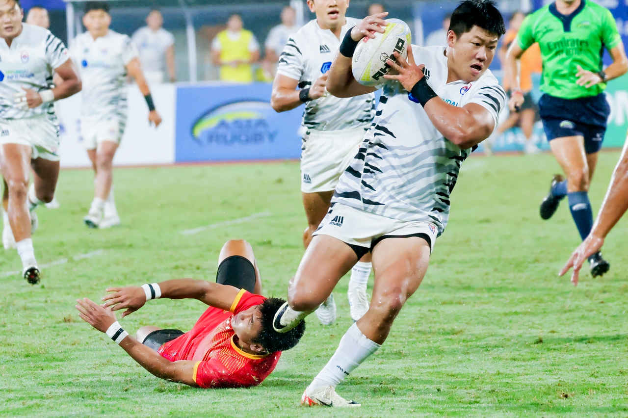 국내 주요 실업팀 국군체육부대, 포스코이앤씨, 한국전력공사, 현대글로비스, OK 읏맨 럭비단으로 선수 13명으로 구성된 남자 국가대표팀은 대회 첫날인 20일 C조 예선에서 필리핀(24-24)을 상대로 동점을 기록하고 대만(17-5)에 승리를 거뒀지만, 중국(12-14)로 패하며 최종 조 2위에 오르며 본선에 진출했다.
