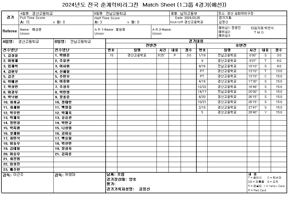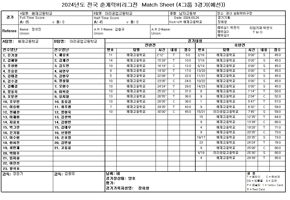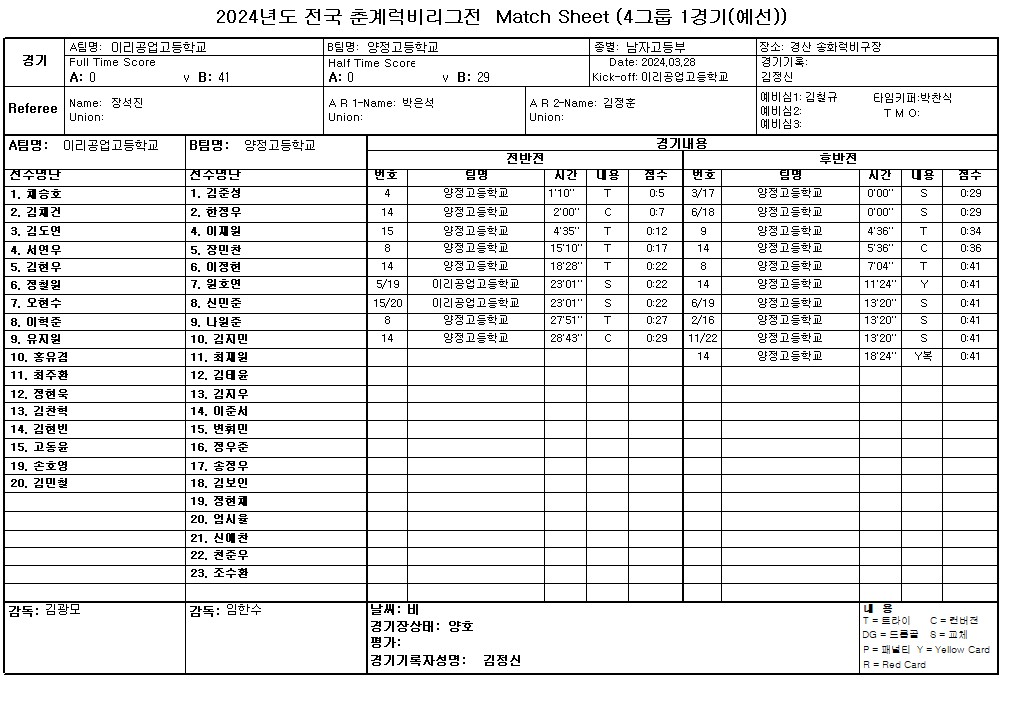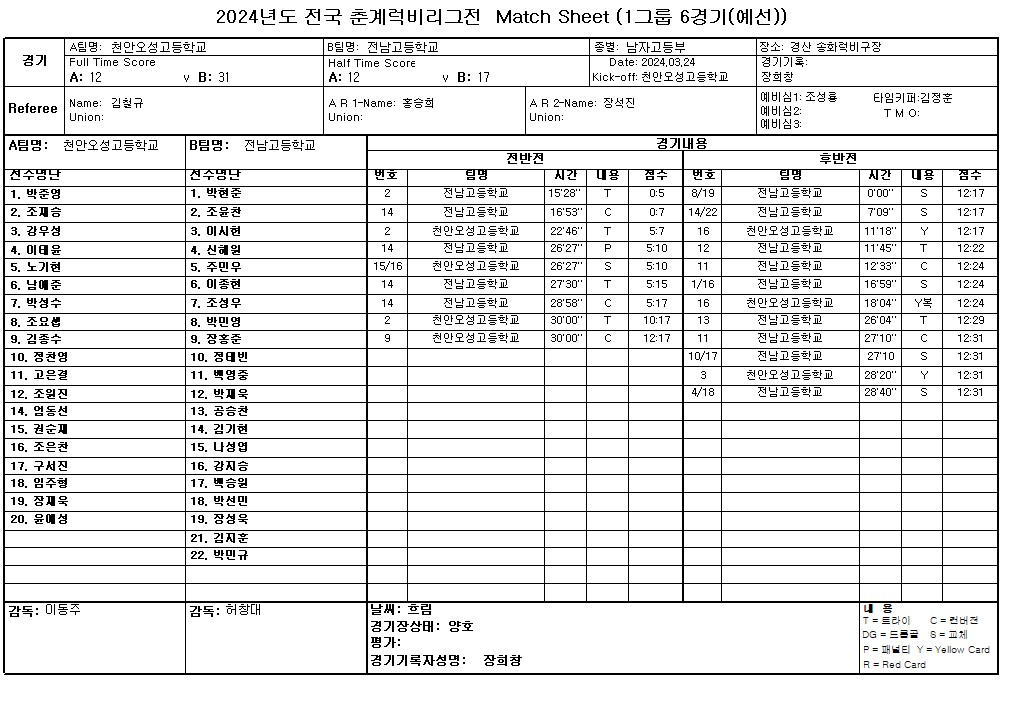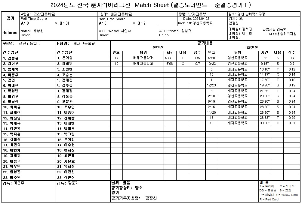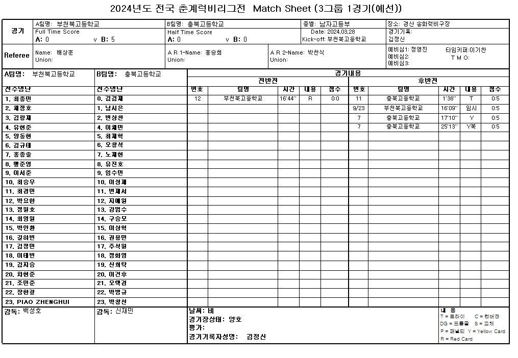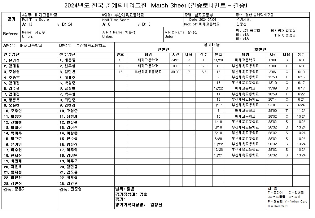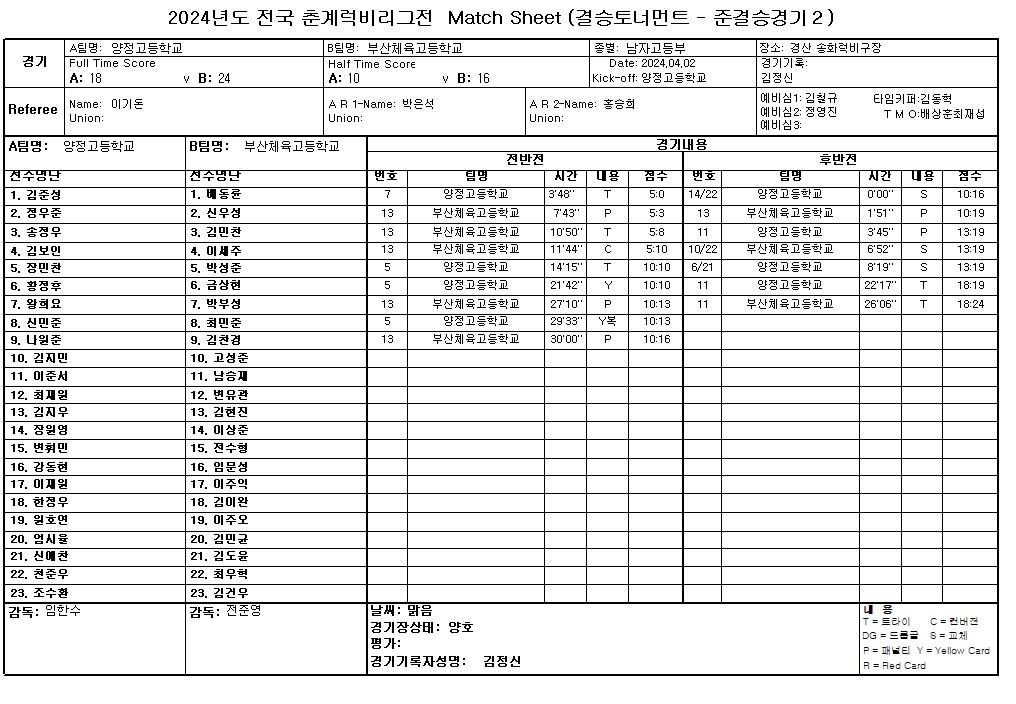| 2024.03.30 15:30 | 부산체육고등학교 33 VS 0 충북고등학교 |