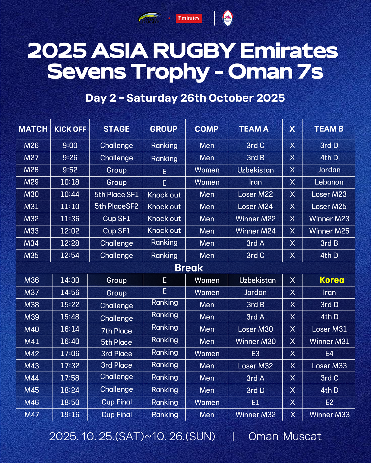 2025 아시아 럭비 에미레이츠 세븐스 트로피 대진표 안내