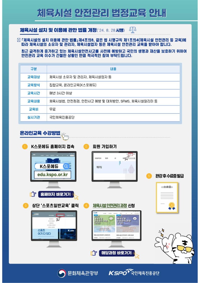 체육시설 안전관리 법정교육 안내