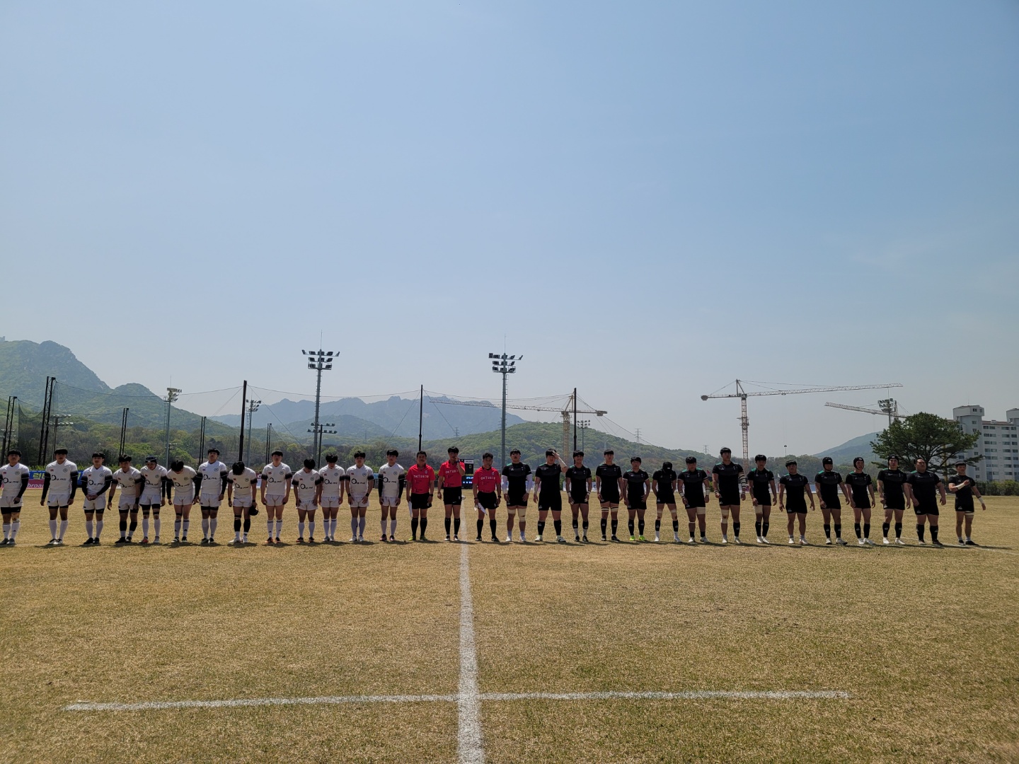 <경기 시작 준비 중인 양팀 선수들과 심판들>