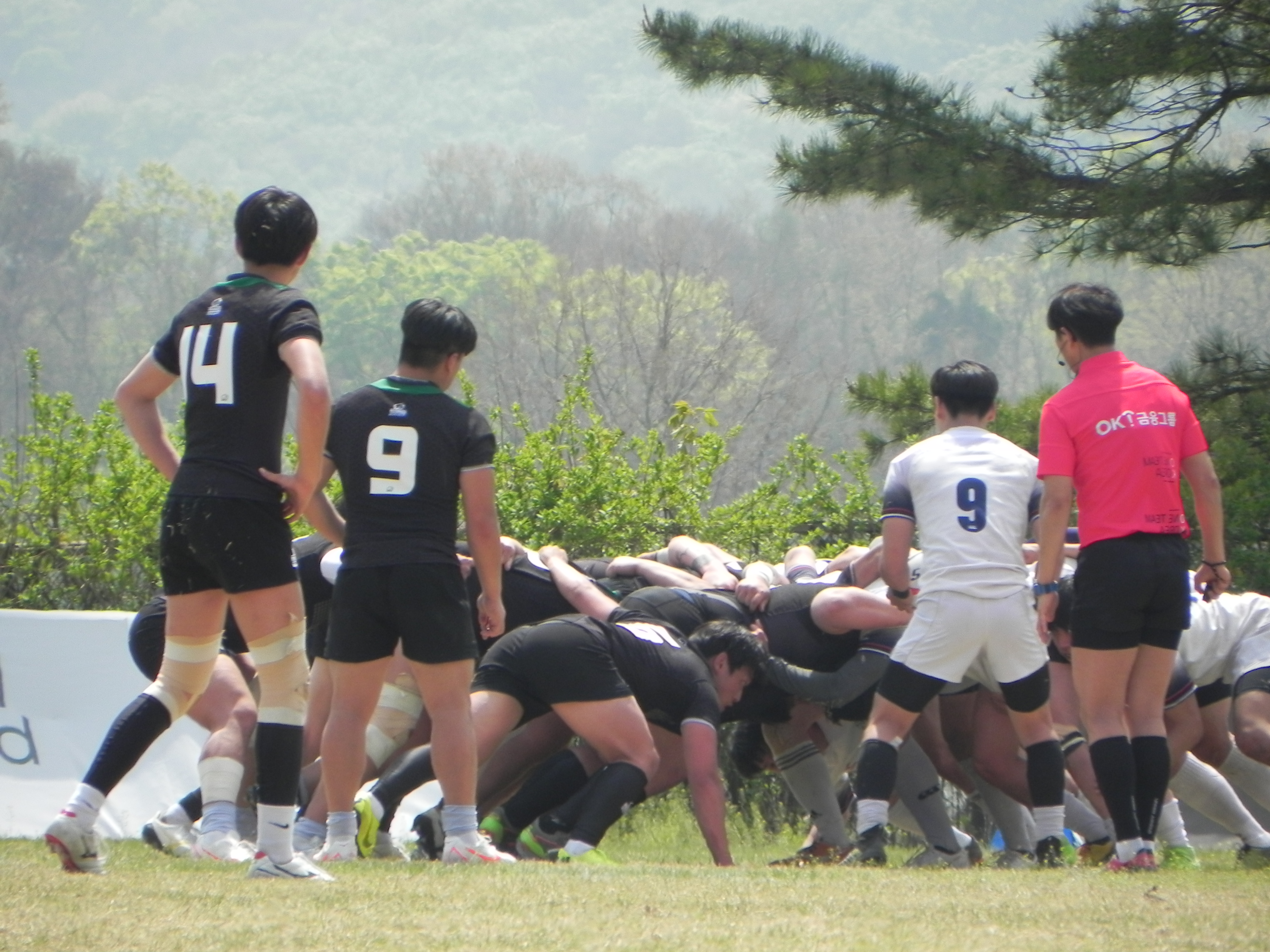 <스크럼 중인 양 팀 선수들>