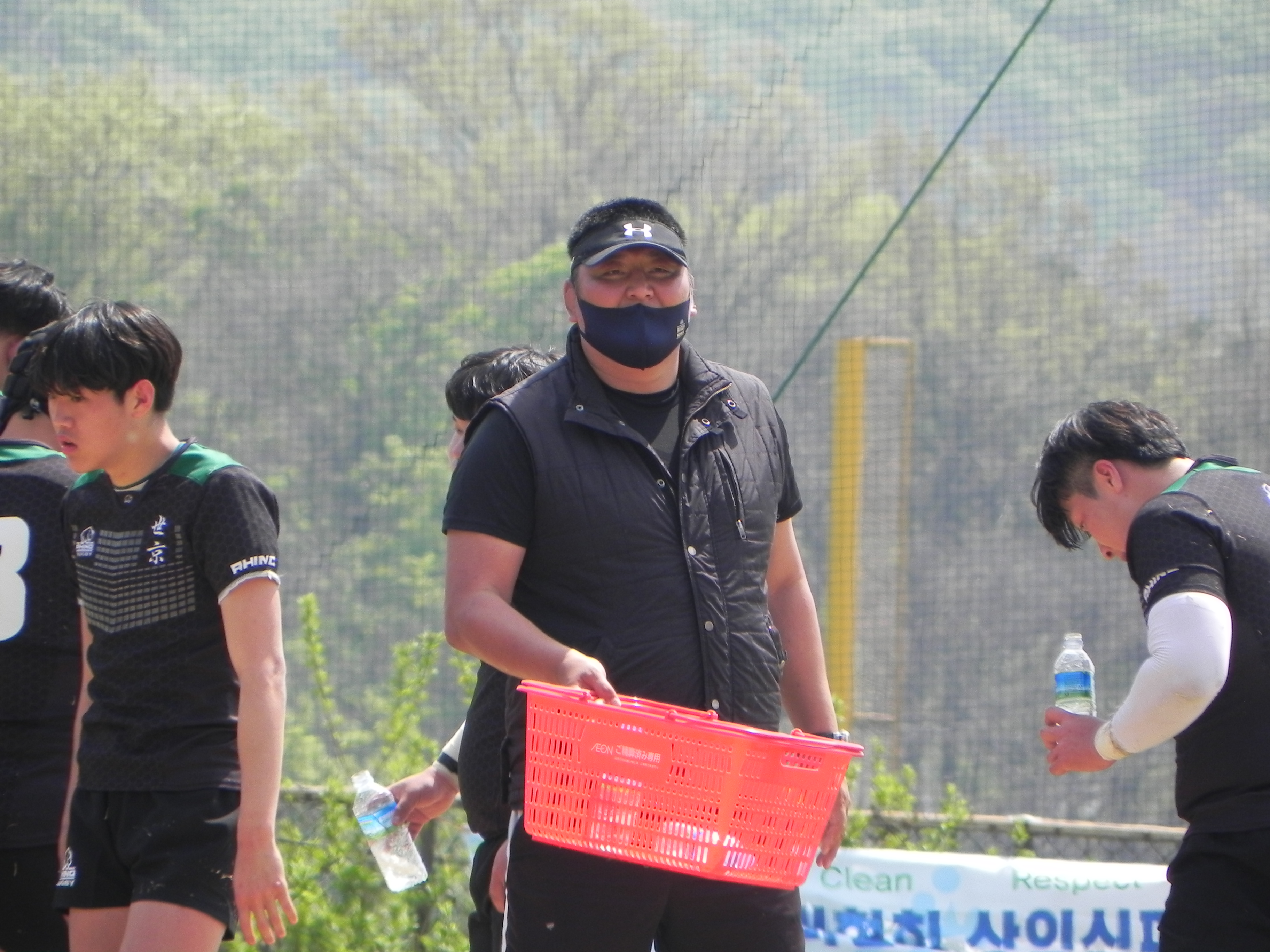 <직접 물을 나눠주는 세경대학교 김영남 감독>