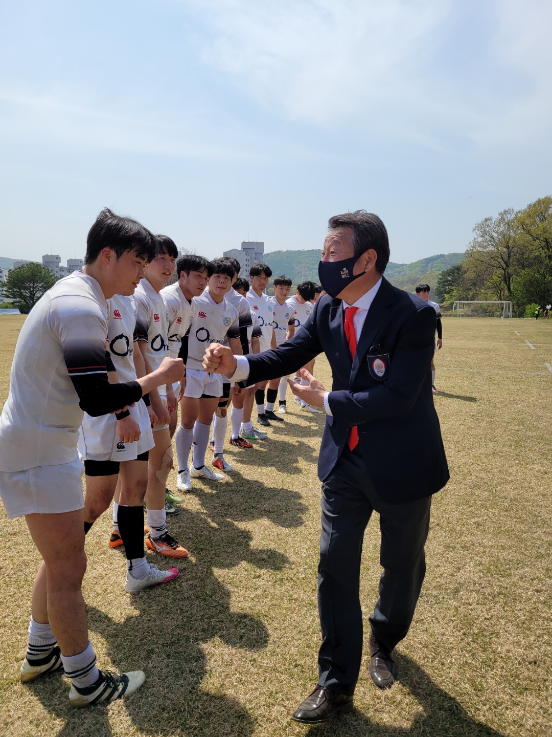 <경기 종료 후 선수들을 격려하는 최윤 회장>