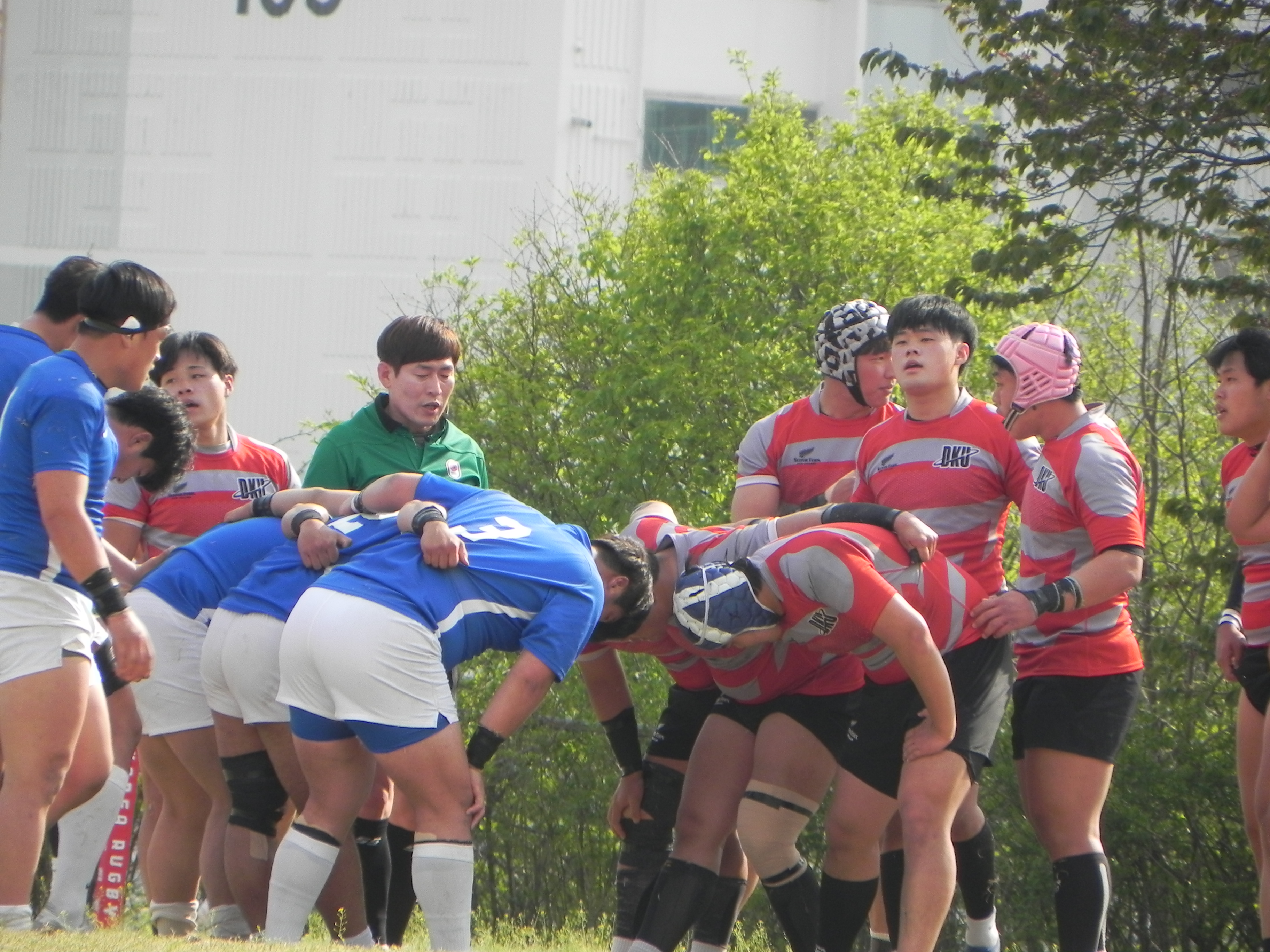 <스크럼 준비 중인 양 팀 선수들>