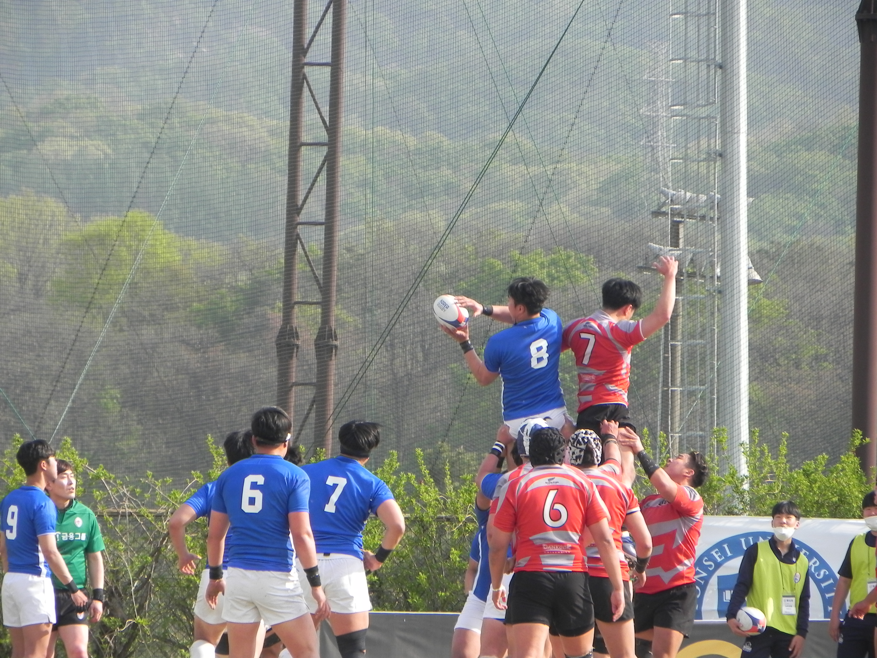 <라인아웃 공을 획득해내는 연세대학교>