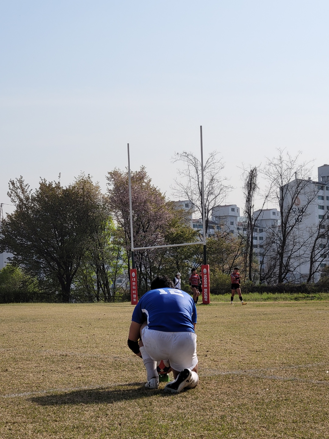 <스크럼 준비중인 양 팀 선수들>