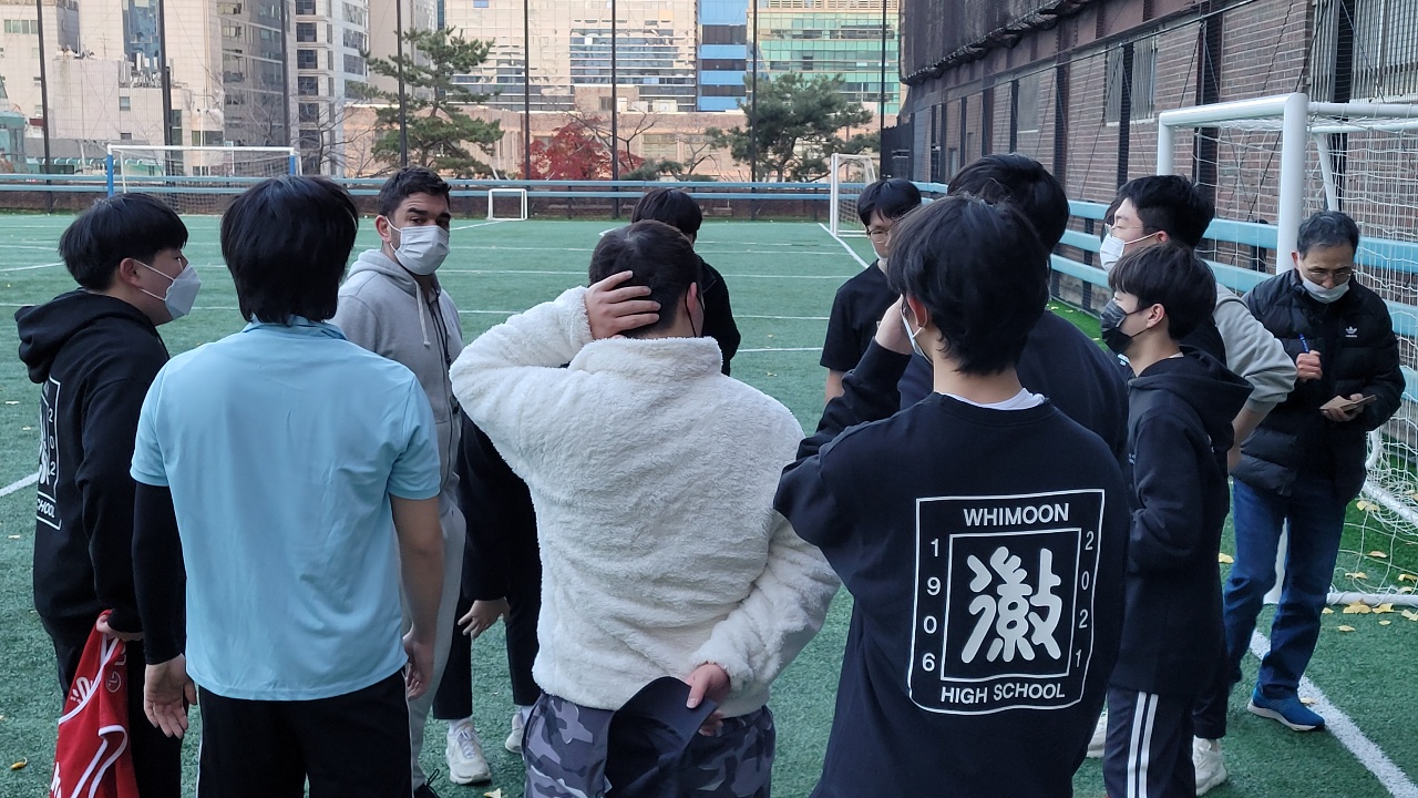 9월에 비해 많은 전체적으로 패스스킬이 향상된 휘문고 학생들. 스크류패스도 자유자재로 구사하는 학생들도 많이 있습니다.