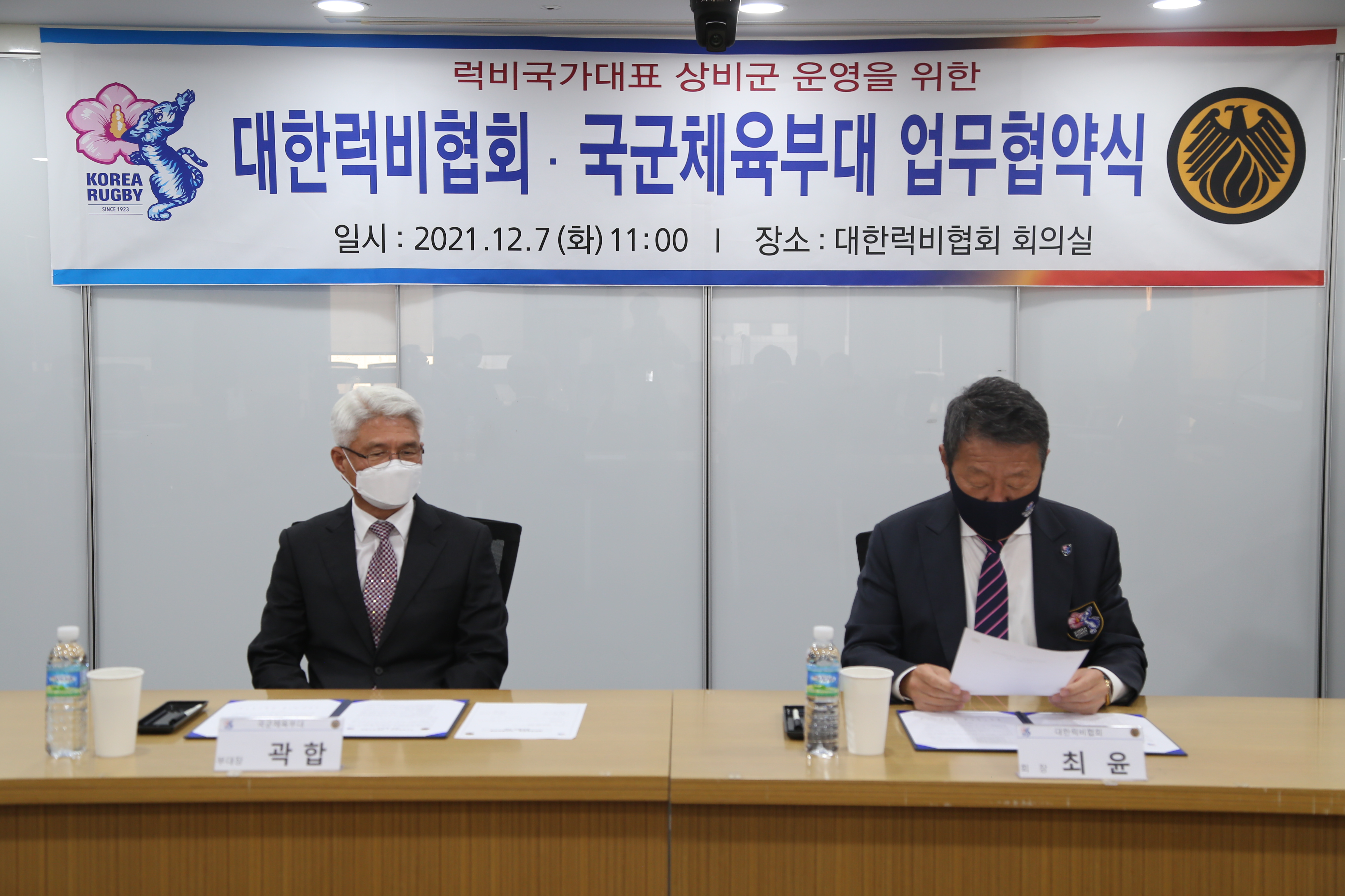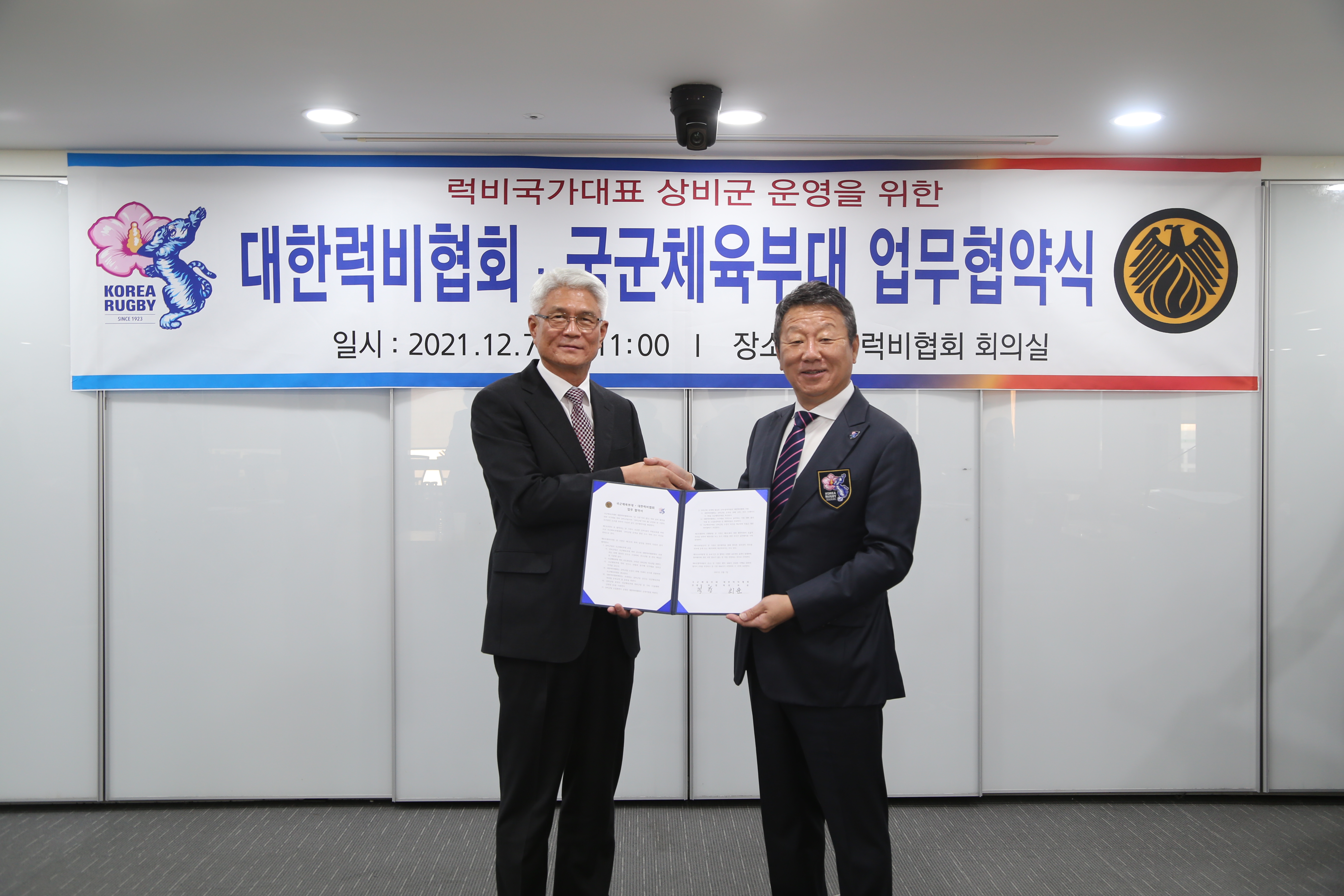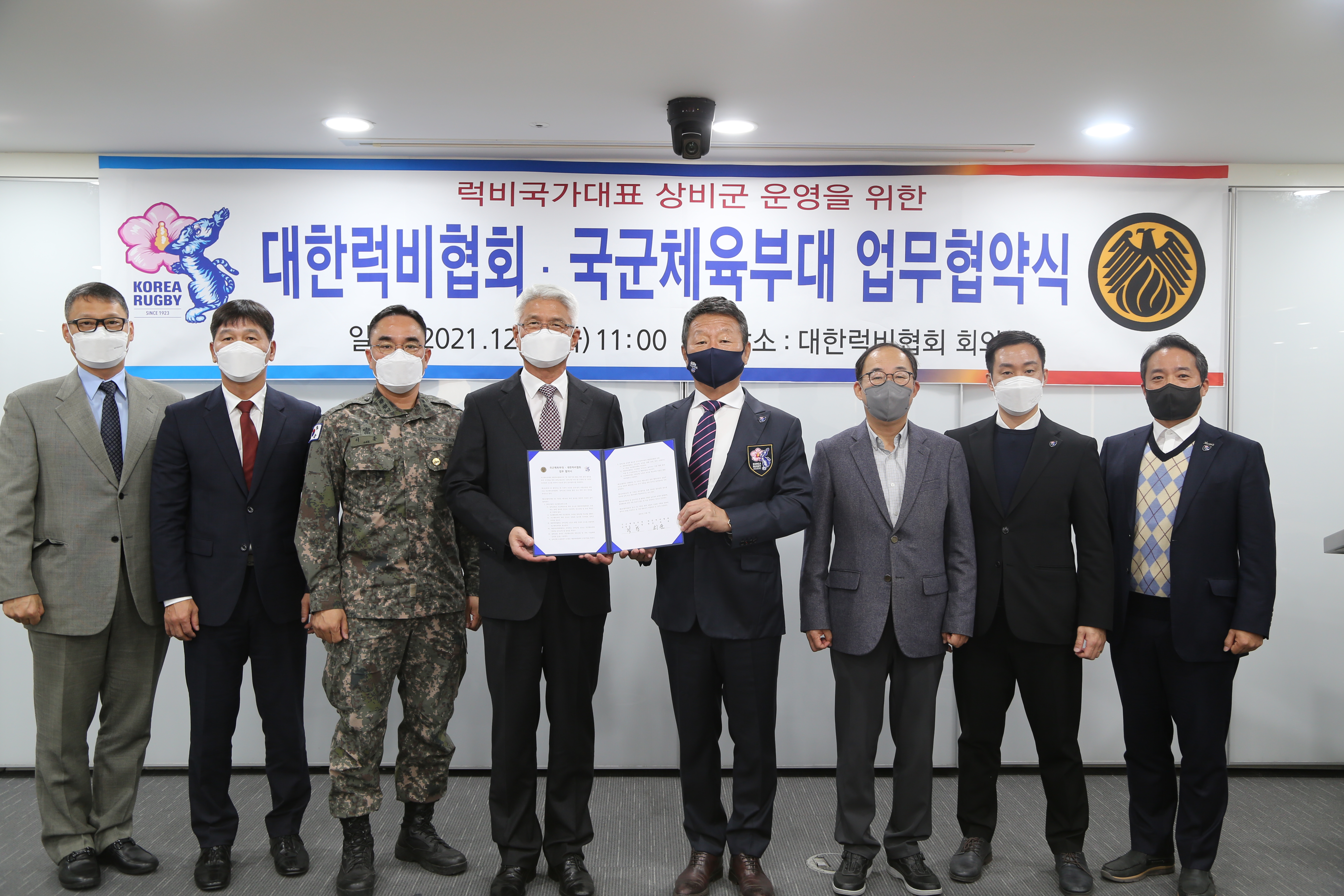 2021년 12월 7일 국군체육부대와 "럭비 종목 발전을 위한 국가대표 럭비 상비군팀 운영"에 관한 업무 협약을 체결하였습니다.