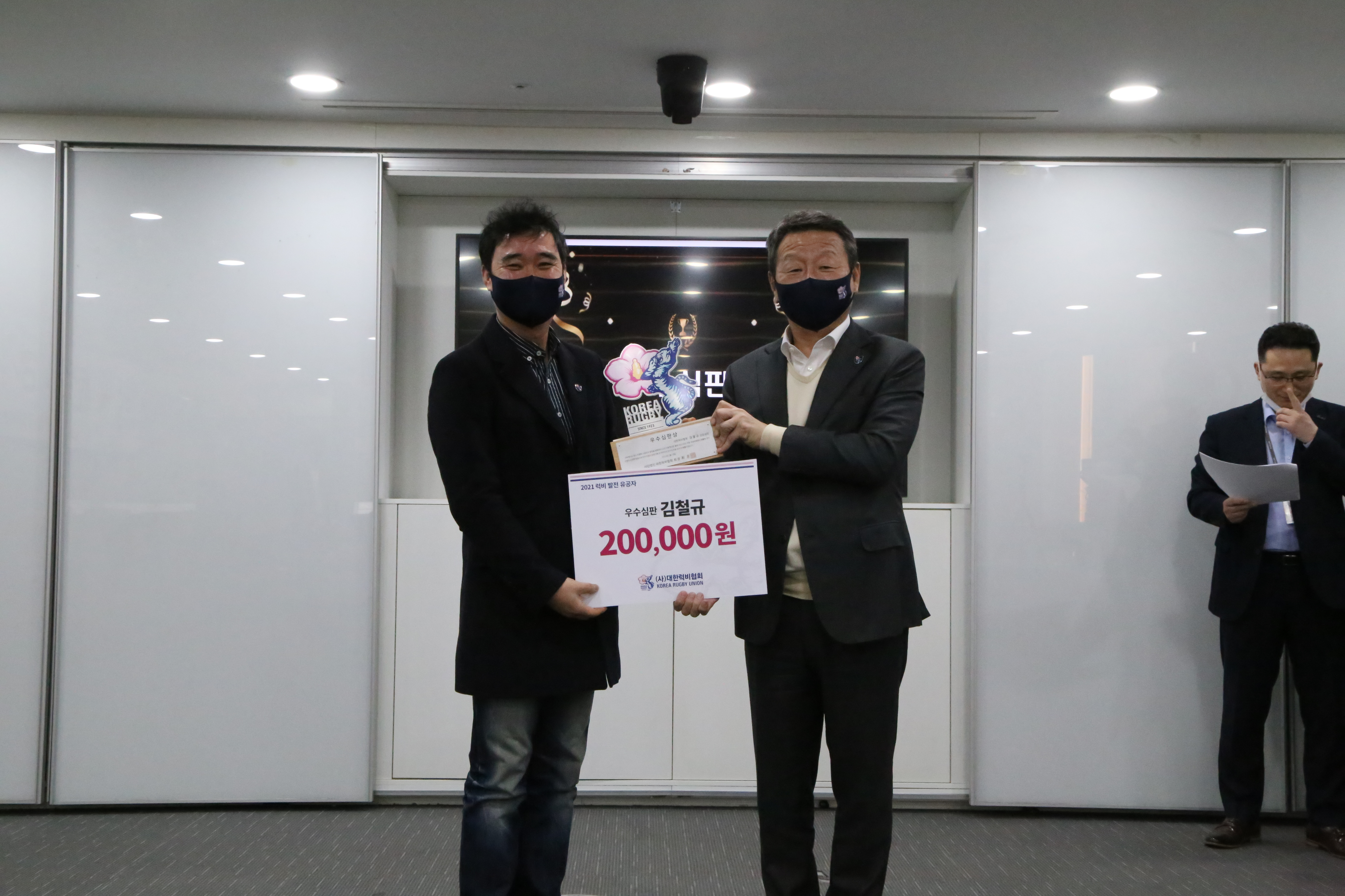 대의원총회에 이어 2021년도 럭비 발전 유공자 시상식이 있었습니다.