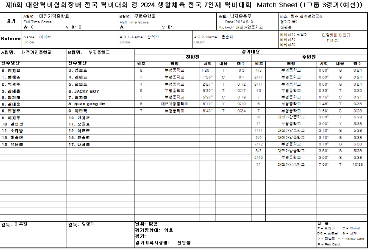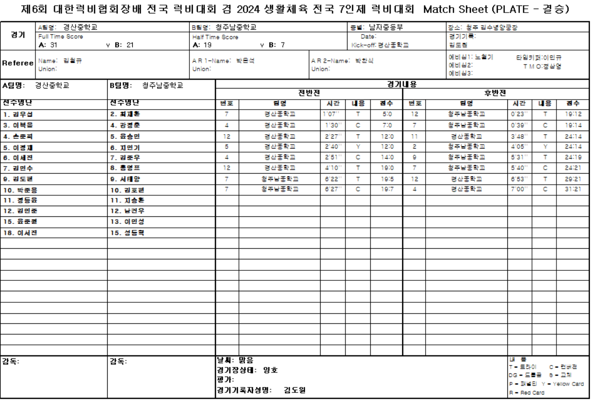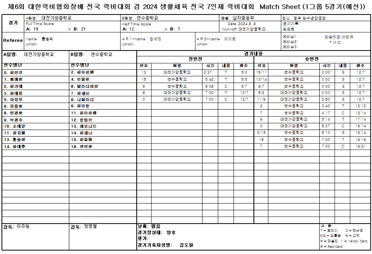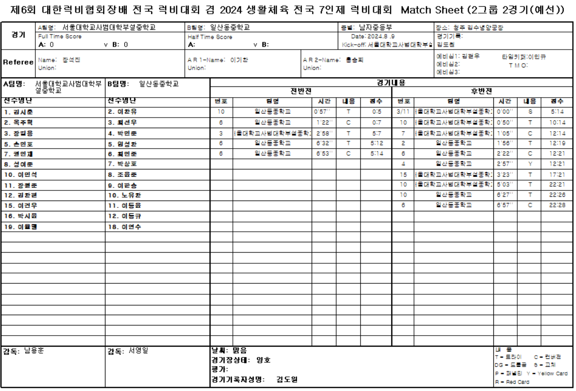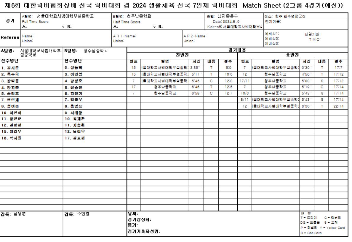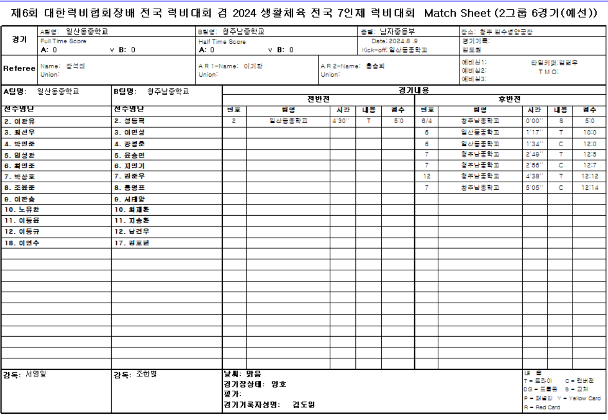 | 2024.08.10 12:30 | 경산중학교 31 VS 21 청주남중학교 |