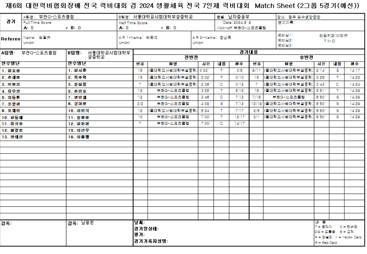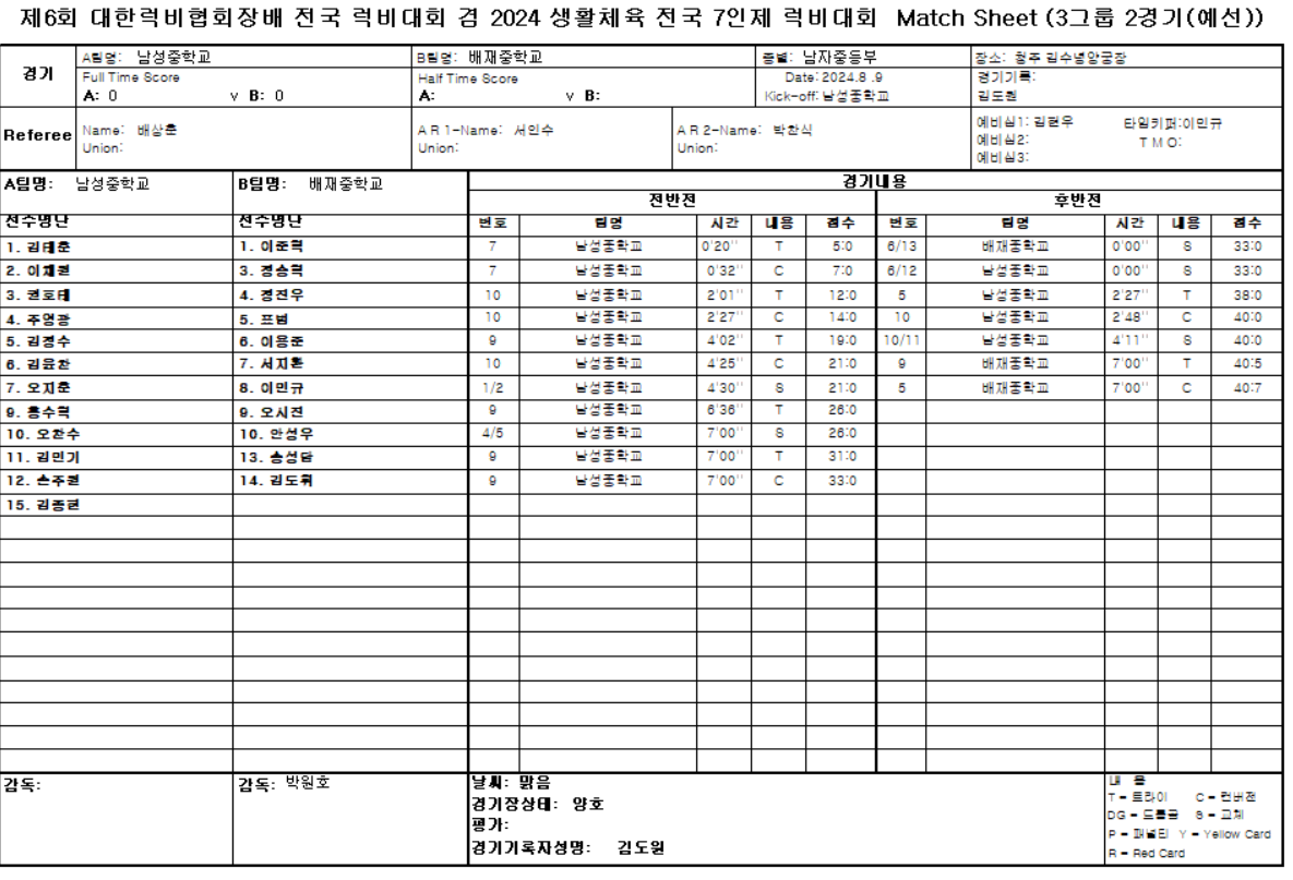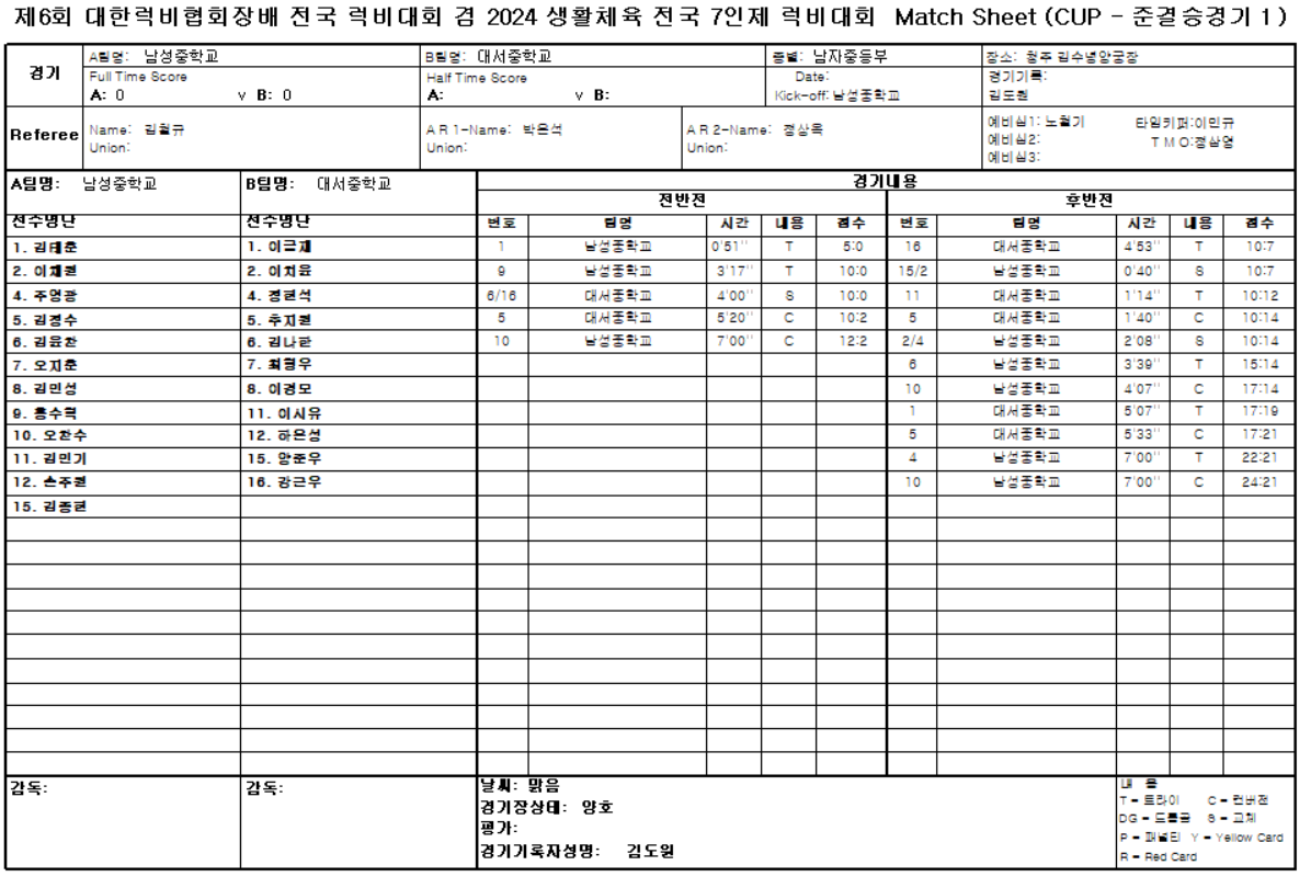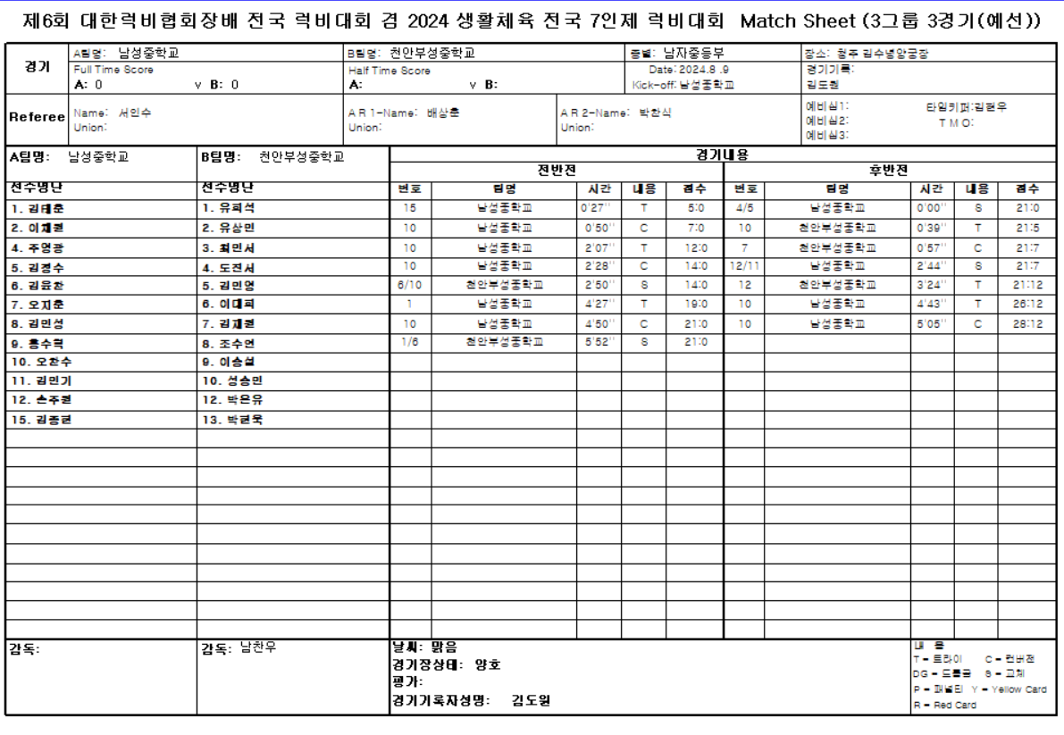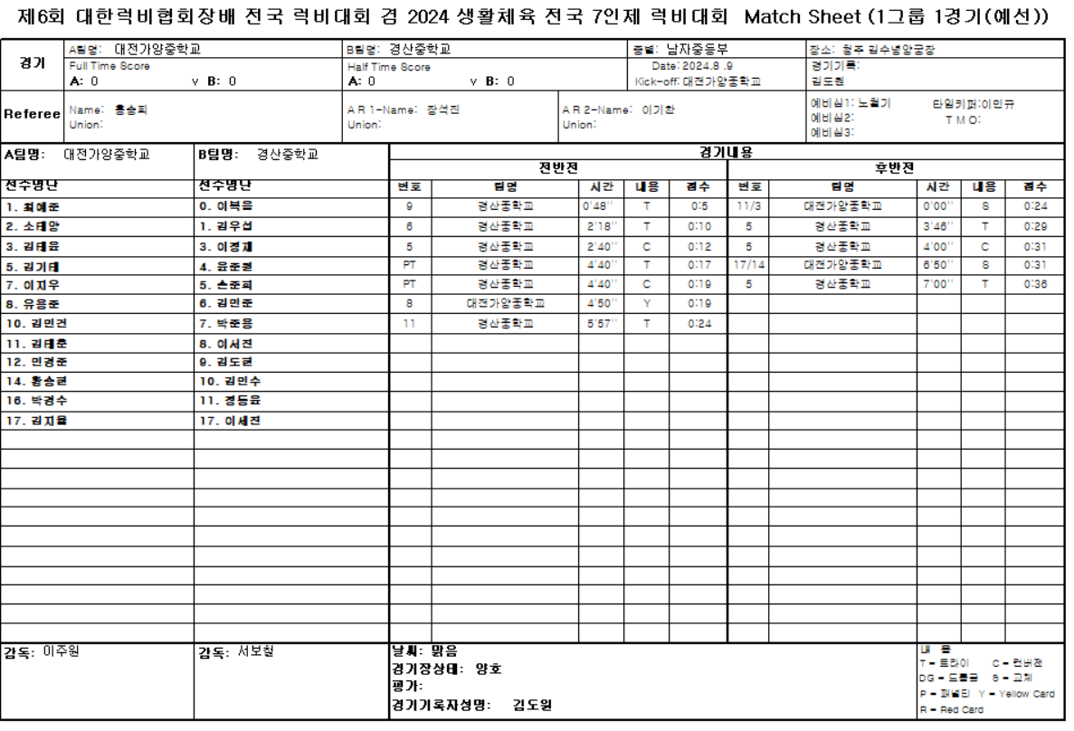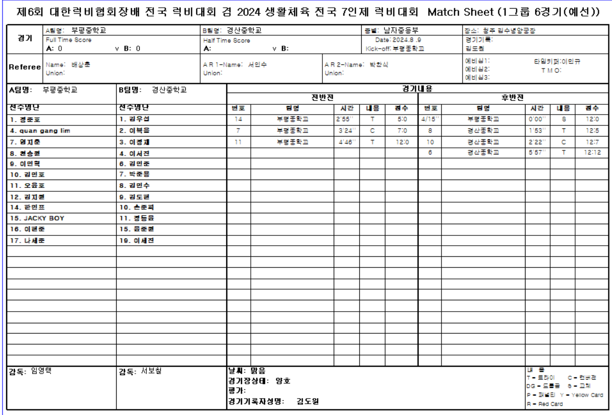 | 2024.08.10 12:30 | 경산중학교 31 VS 21 청주남중학교 |