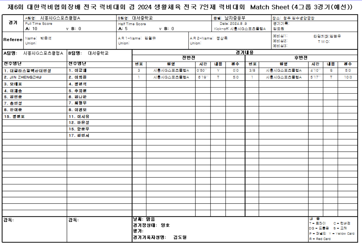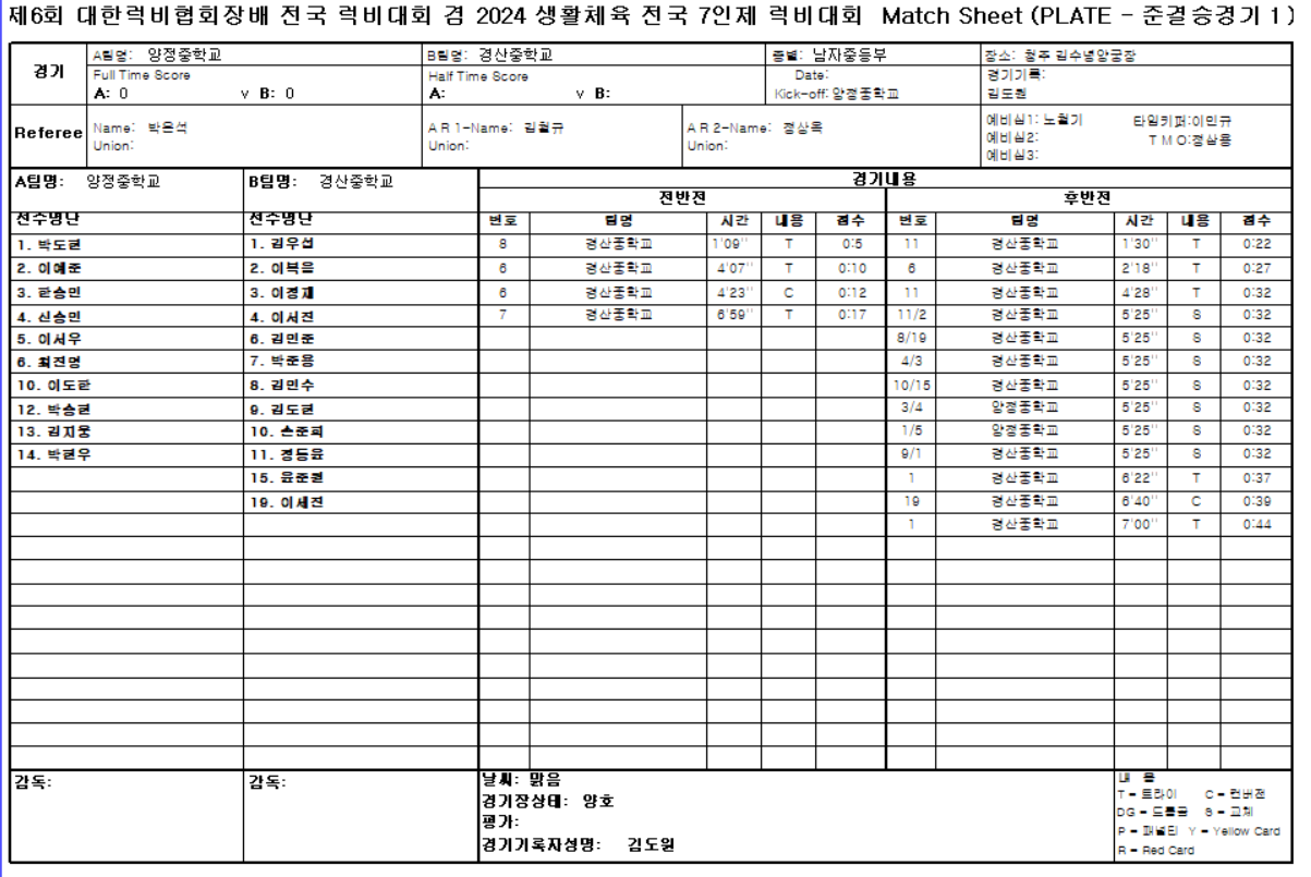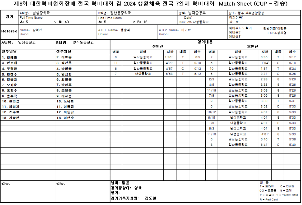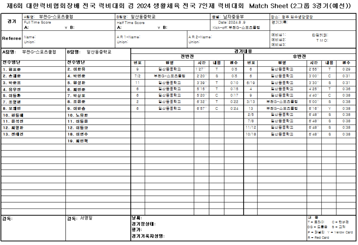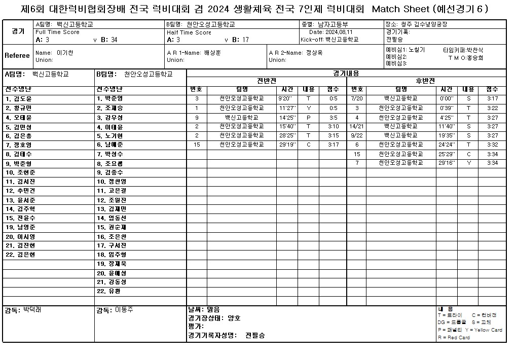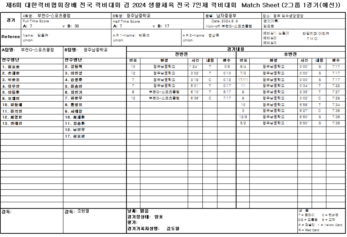 | 2024.08.10 12:30 | 경산중학교 31 VS 21 청주남중학교 |