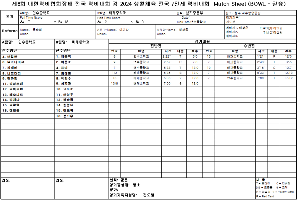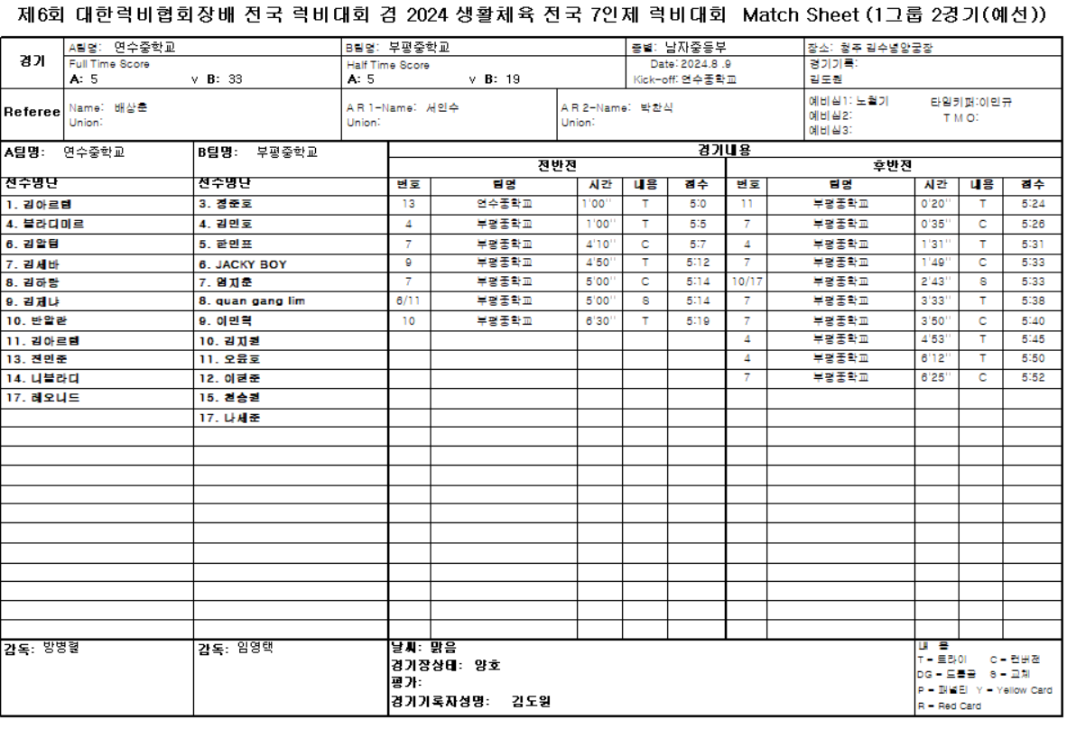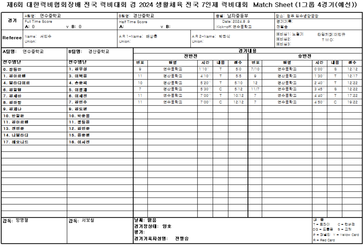 | 2024.08.10 12:00 | 연수중학교 17 VS 12 배재중학교 |