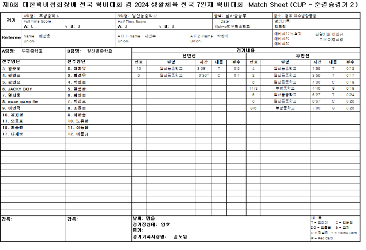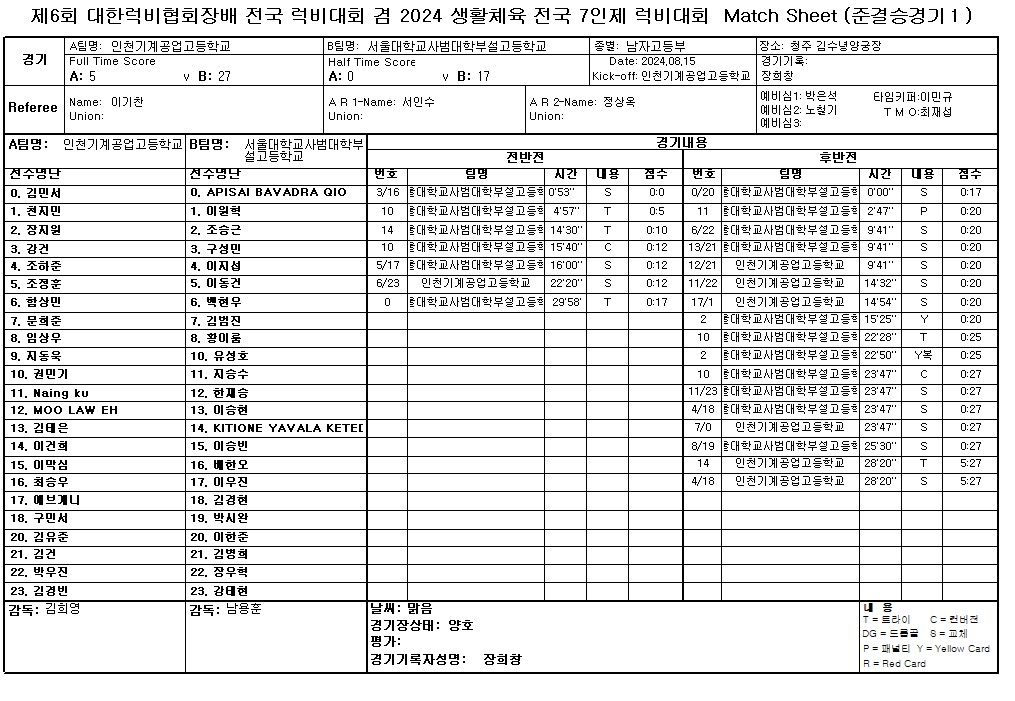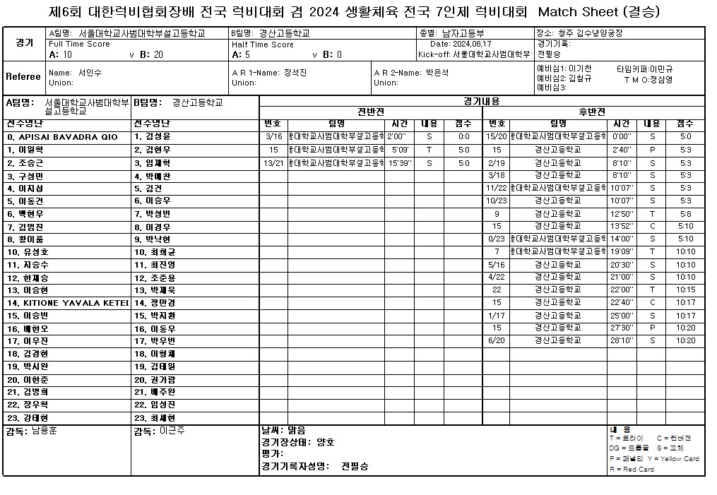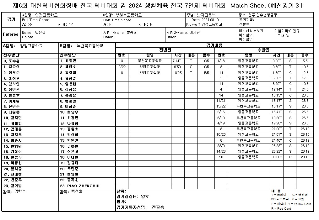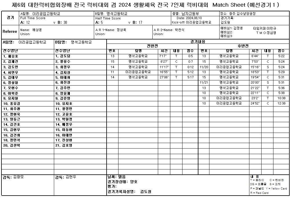 | 2024.08.13 16:20 | 경산고등학교 27 VS 21 부산체육고등학교 |