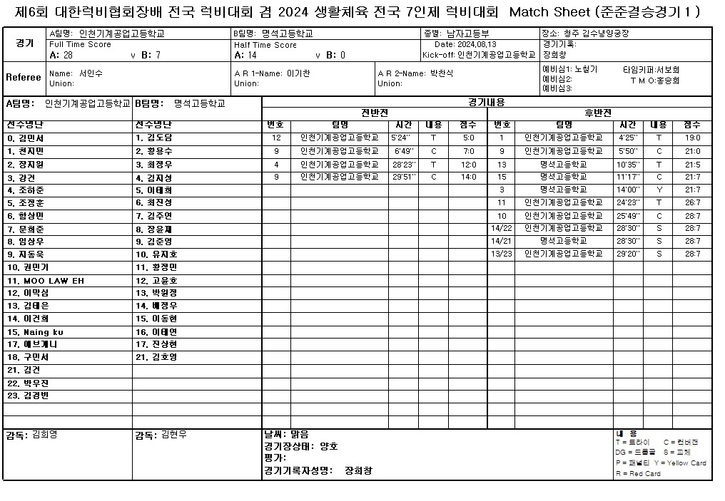 | 2024.08.13 11:00 | 인천기계공업고등학교 28 VS 7 명석고등학교 |