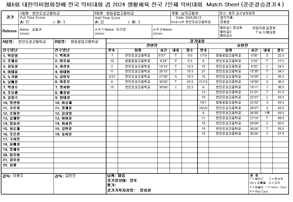 | 2024.08.13 17:40 | 천안오성고등학교 57 VS 3 창원공업고등학교 |