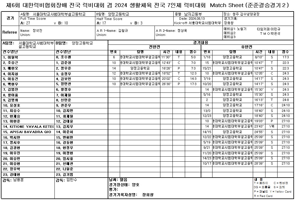 | 2024.08.13 15:00 | 서울대학교사범대학부설고등학교 27 VS 10 양정고등학교 |