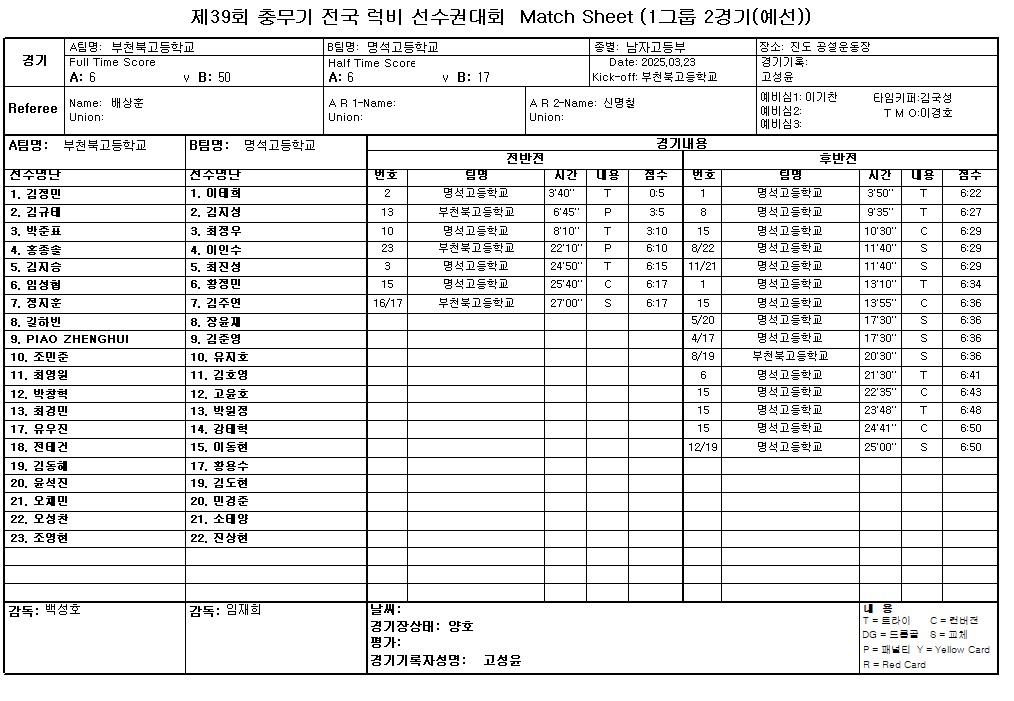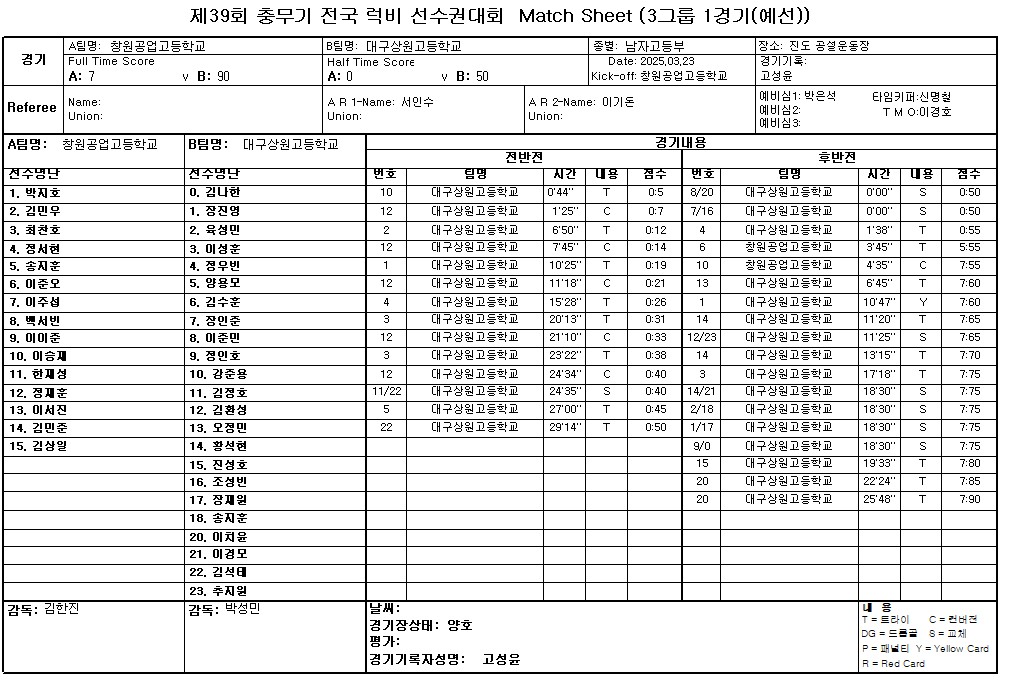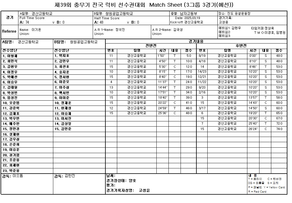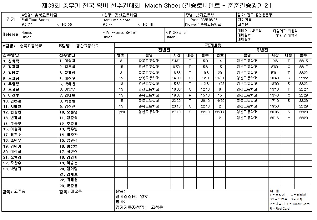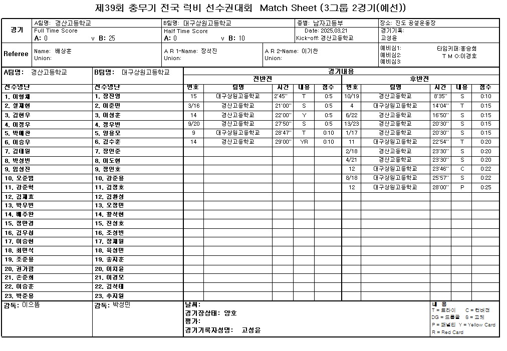 | 2025.03.25 11:20 | 충북고등학교 22 VS 29 경산고등학교 |