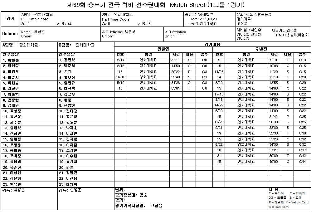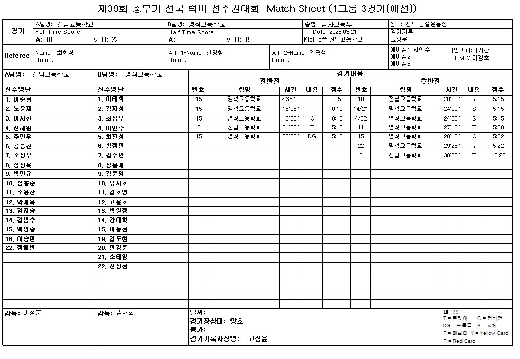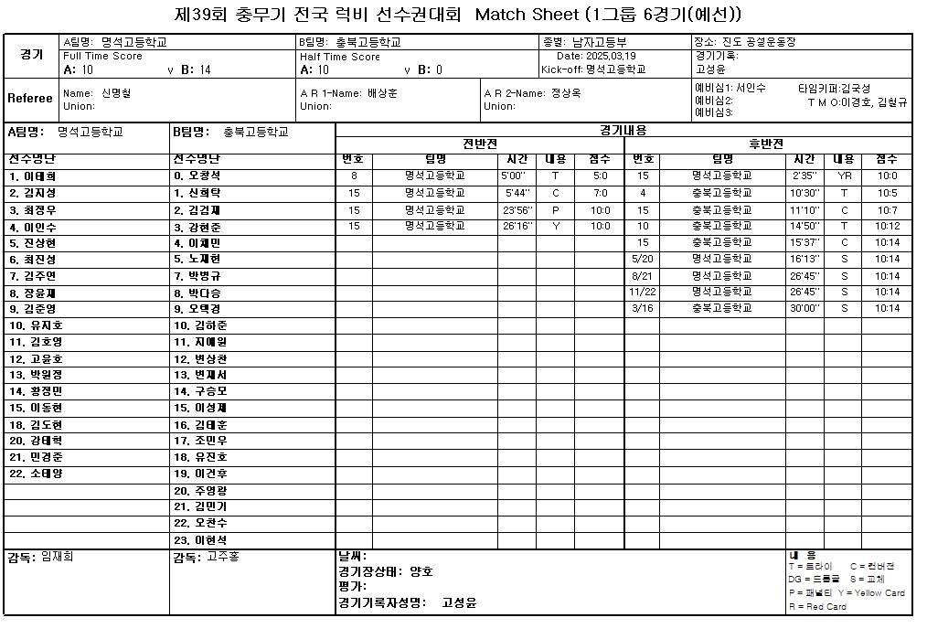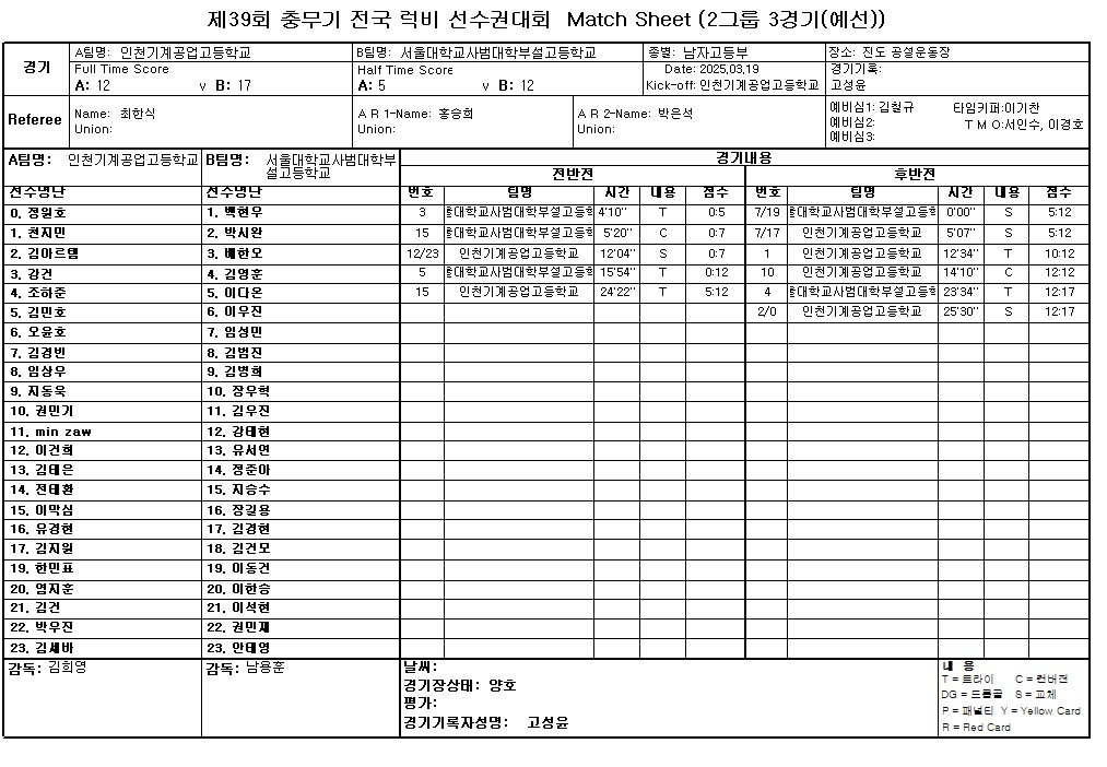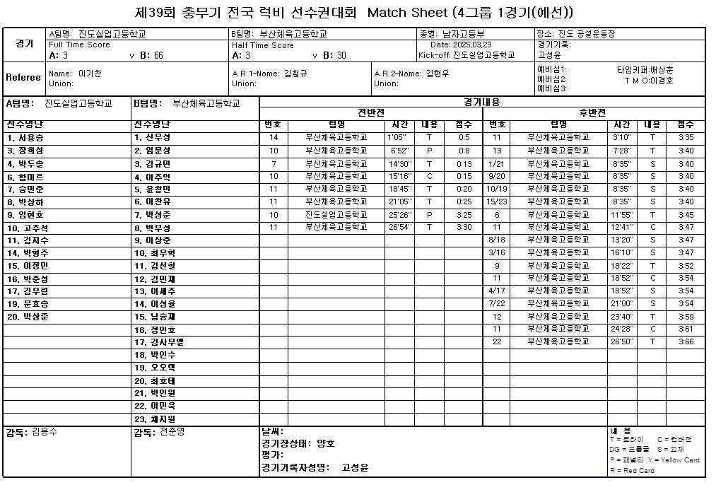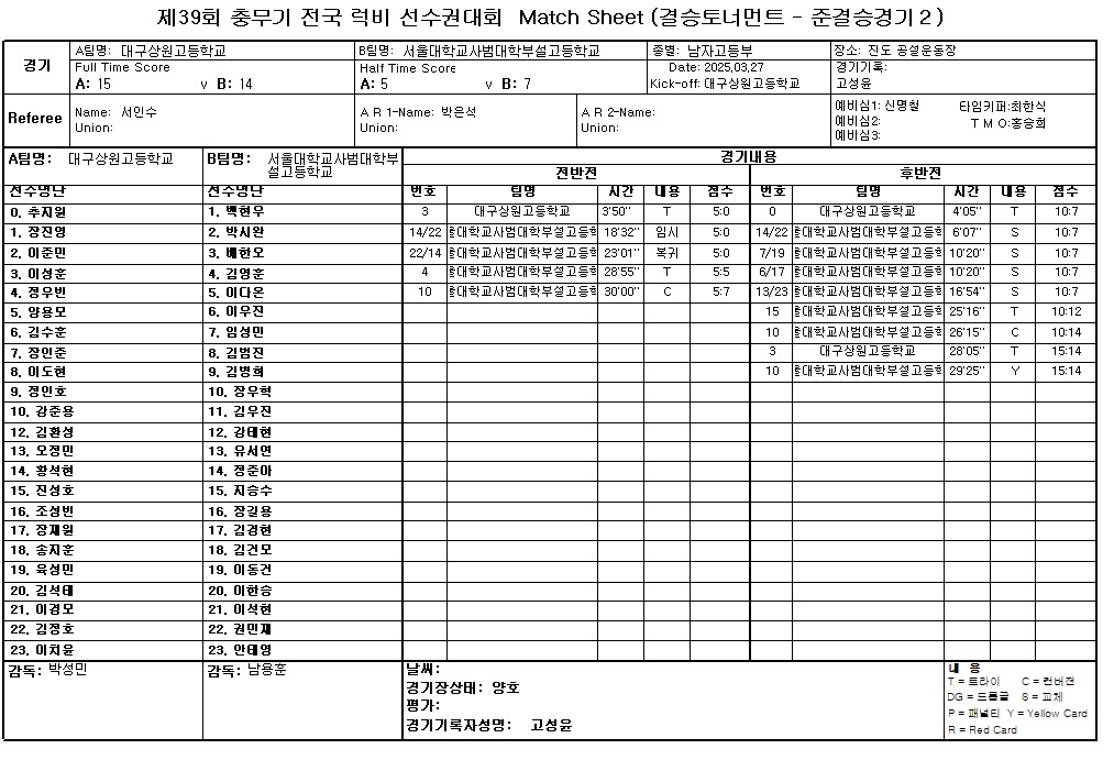 | 2025.03.25 11:20 | 충북고등학교 22 VS 29 경산고등학교 |