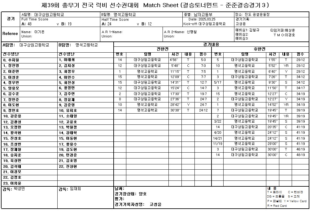 | 2025.03.25 12:40 | 대구상원고등학교 48 VS 19 명석고등학교 |