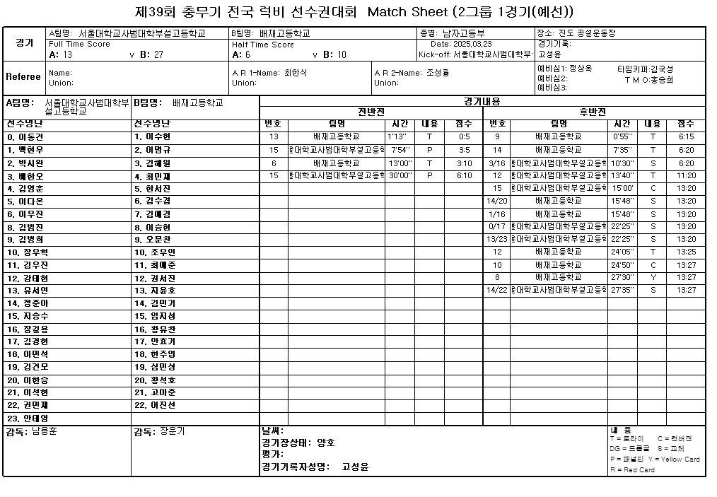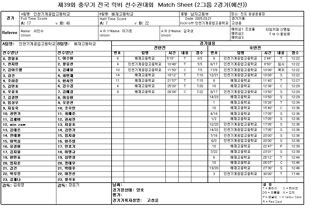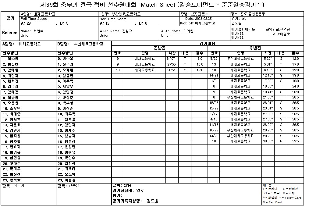 | 2025.03.25 10:00 | 배재고등학교 29 VS 5 부산체육고등학교 |