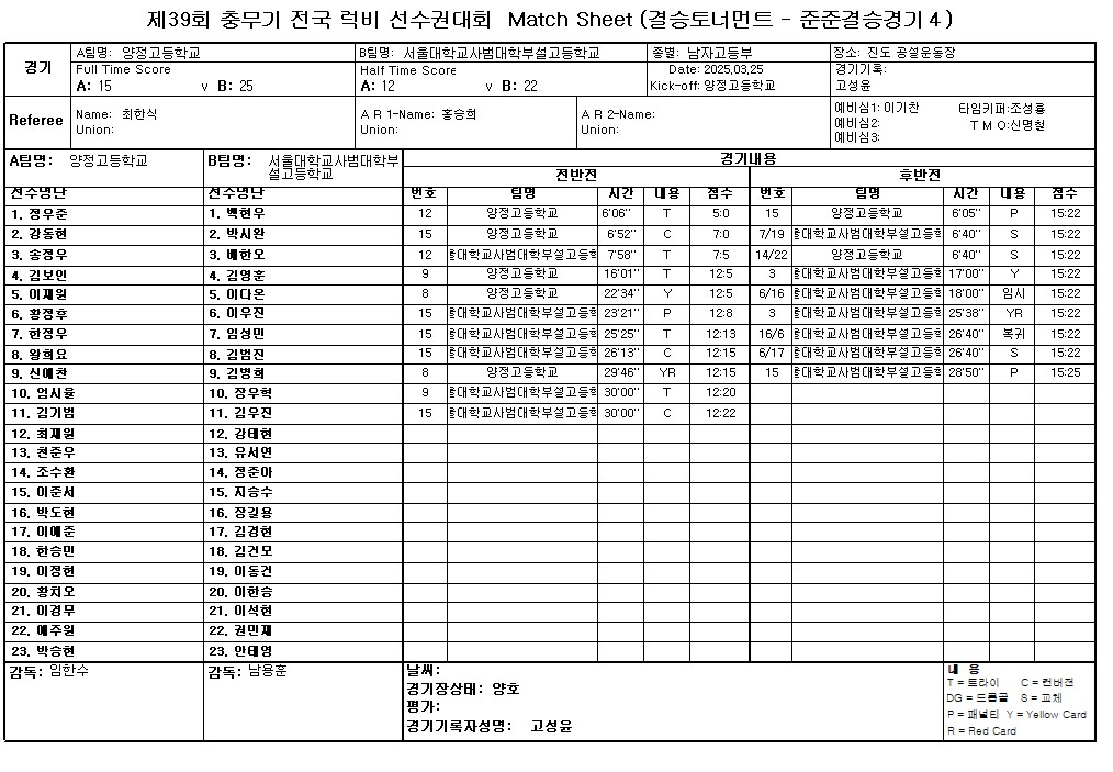 | 2025.03.25 14:00 | 양정고등학교 15 VS 25 서울대학교사범대학부설고등학교 |