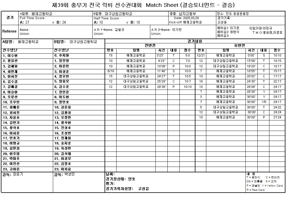 | 2025.03.29 10:00 | 배재고등학교 27 VS 24 대구상원고등학교 |